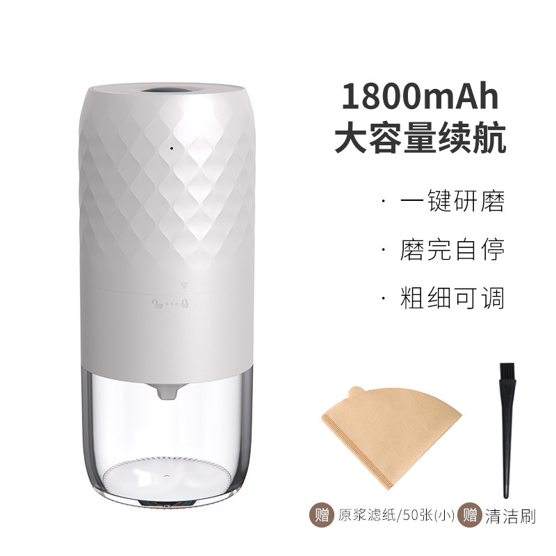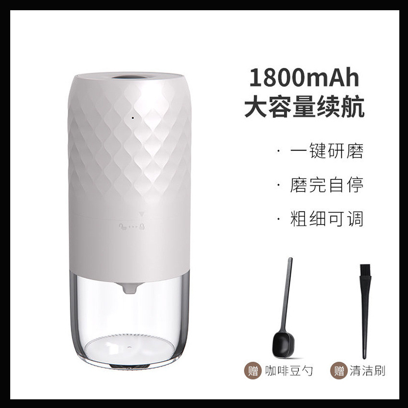 №【Белый 2.0】Электрическая кофемолка с алмазным узором + мерная ложка для кофейных зерен + щетка для чистки - Shopping Party
