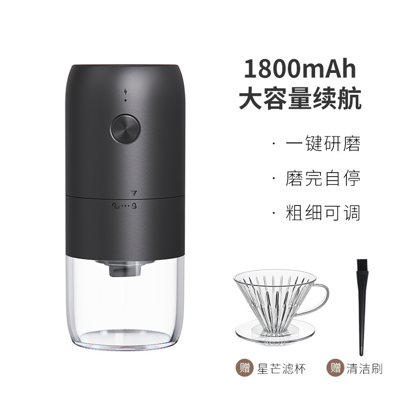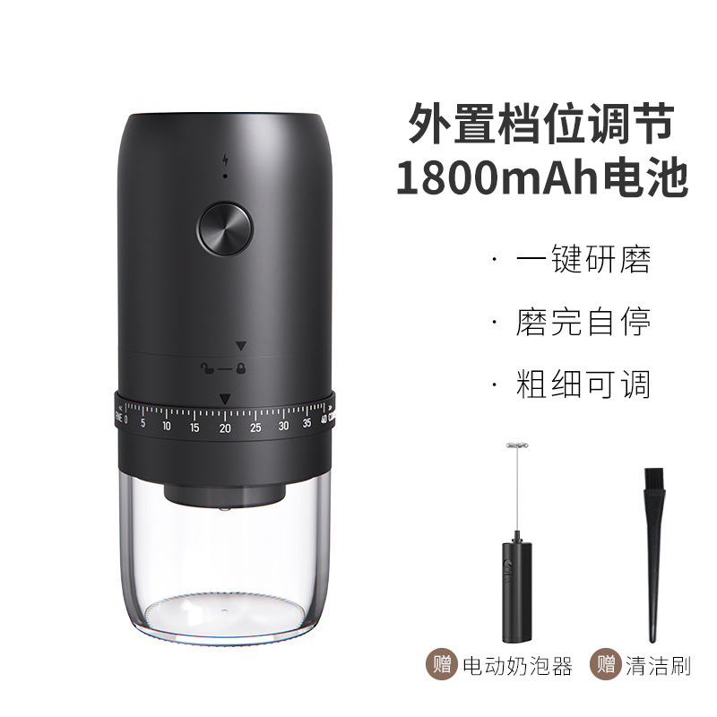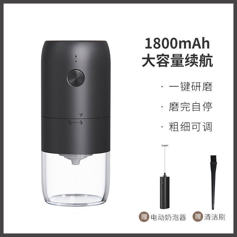 №【Черный】Электрическая кофемолка - Электрический вспениватель молока - Щетка для чистки - Праздничный шопинг