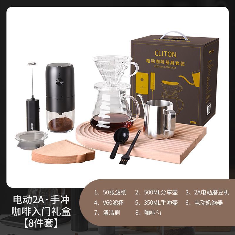 №【Древесная текстура】Электрическая кофемолка + Натуральная фильтровальная бумага + Щетка для чистки - Праздничный набор для покупок