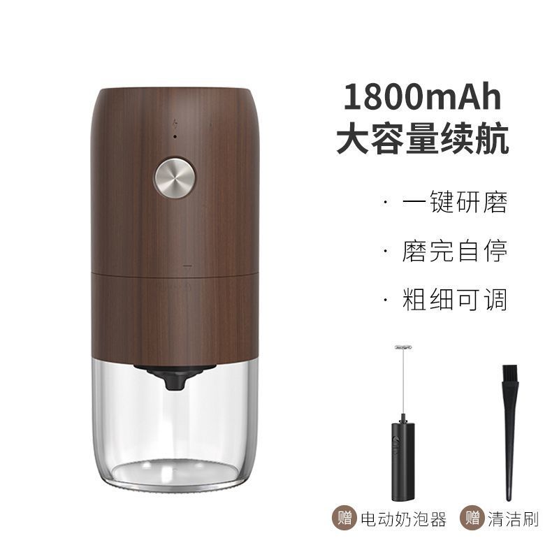 №【Деревянная текстура】Электрическая кофемолка + Электрический вспениватель молока + Щетка для чистки - Набор для покупок