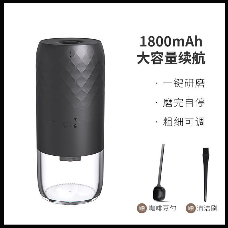 №【Черный 2.0】Электрическая кофемолка с алмазным узором + мерная ложка для кофейных зерен + щетка для чистки - Shopping Party