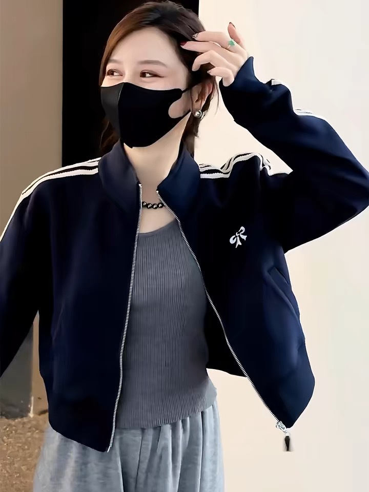 Главная страница > Синяя короткая бейсбольная куртка женский 2025 новая весенняя новая корейская повседневная куртка кардиган топ
