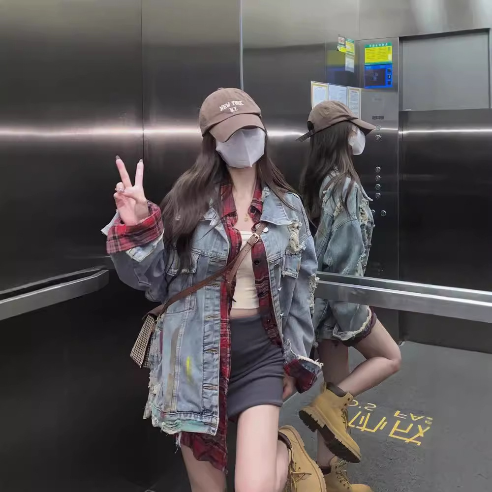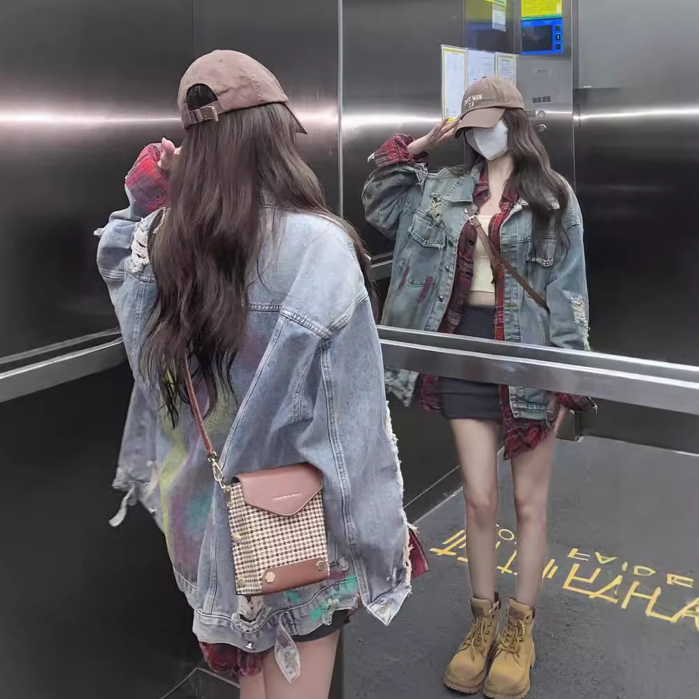 Главная страница > Американский ретро-гонконгский стиль граффити джинсовая куртка женская весна и осень высокого уровня дизайн нишевые куртки топ