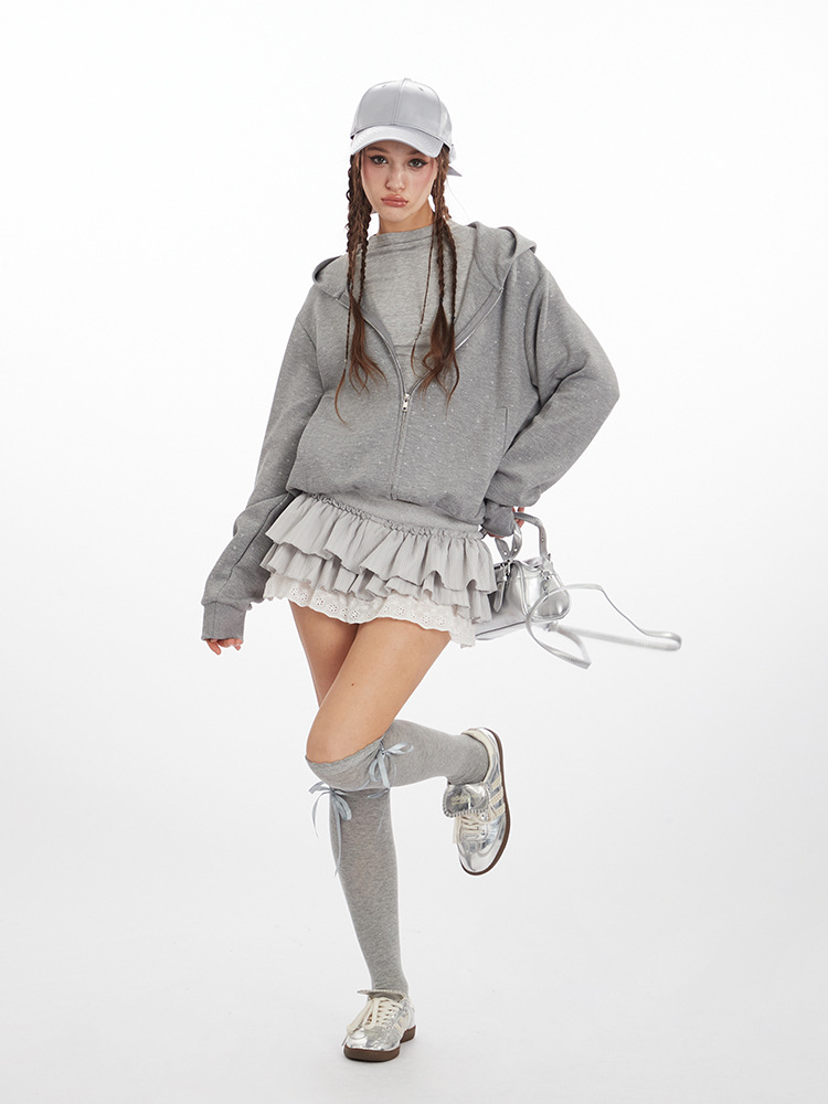 Главная страница > HeyHenry 2025 весна и осень звезда печать дизайн чувство кардиган с капюшоном Короткая толстовка женская свободная куртка