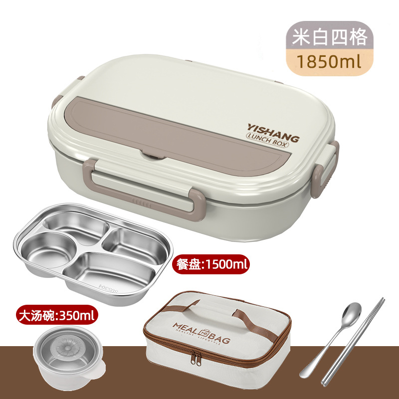 [Бежевый] Средний размер 1800 мл (четыре отделения) + посуда