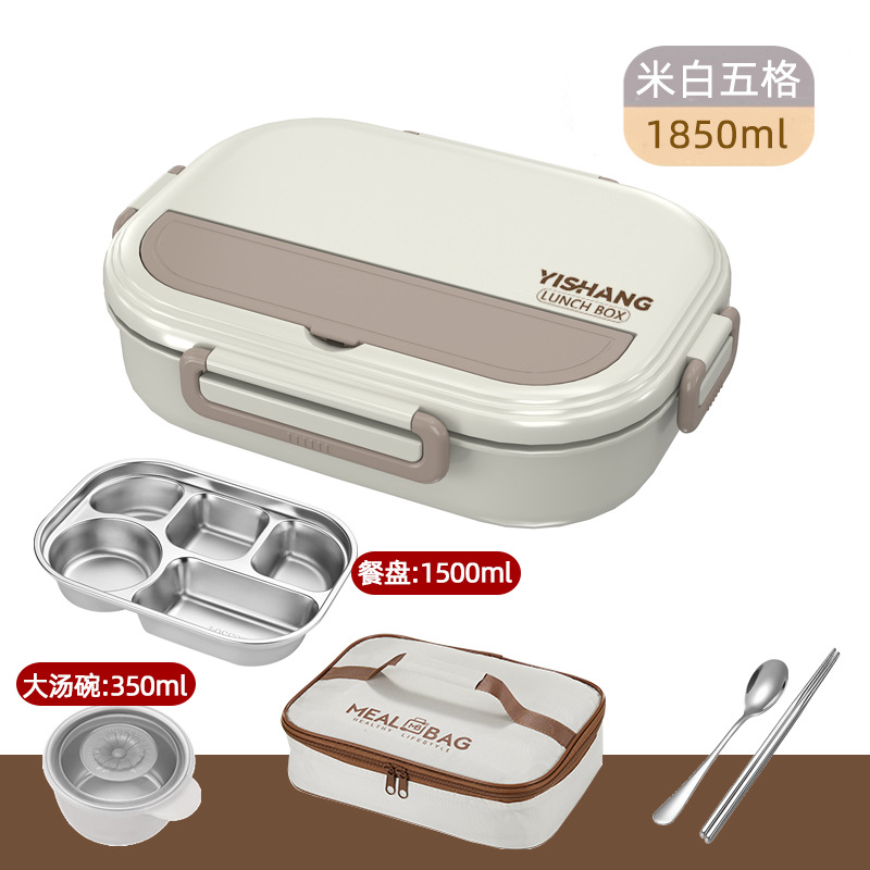 [Бежевый] Средний размер 1800 мл (пять отделений) + посуда