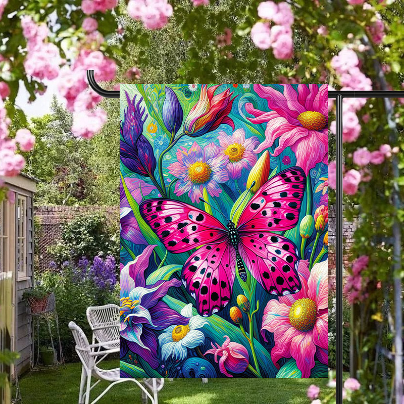 Фиолетовый бабочка садовый флаг весна, летний садовый флаг, дом цветок бабочка маленький садовый флаг