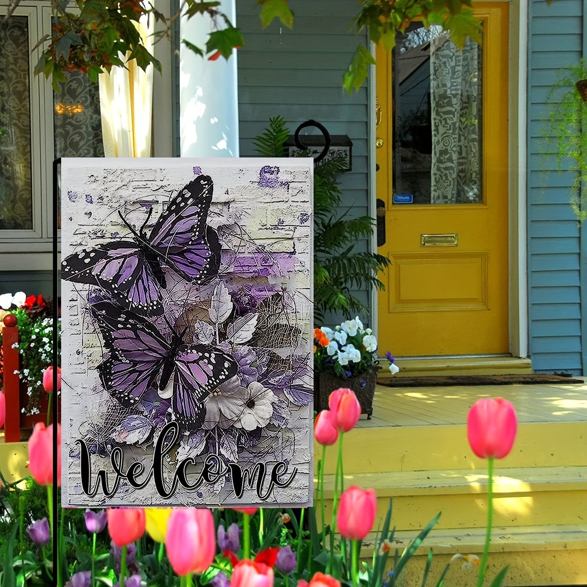 Главная страница > Фиолетовый бабочка садовый флаг весна, летний садовый флаг, дом цветок бабочка маленький садовый флаг
