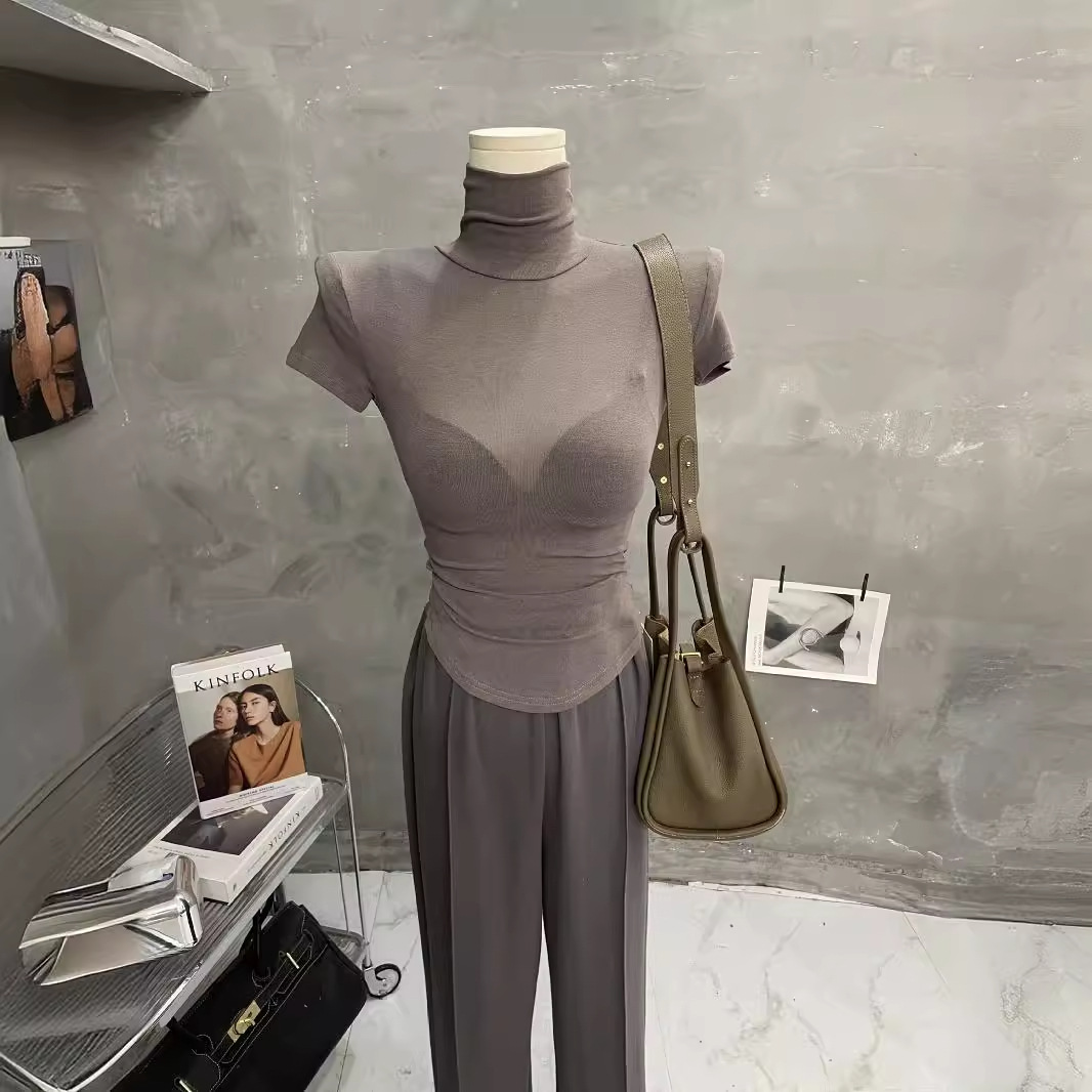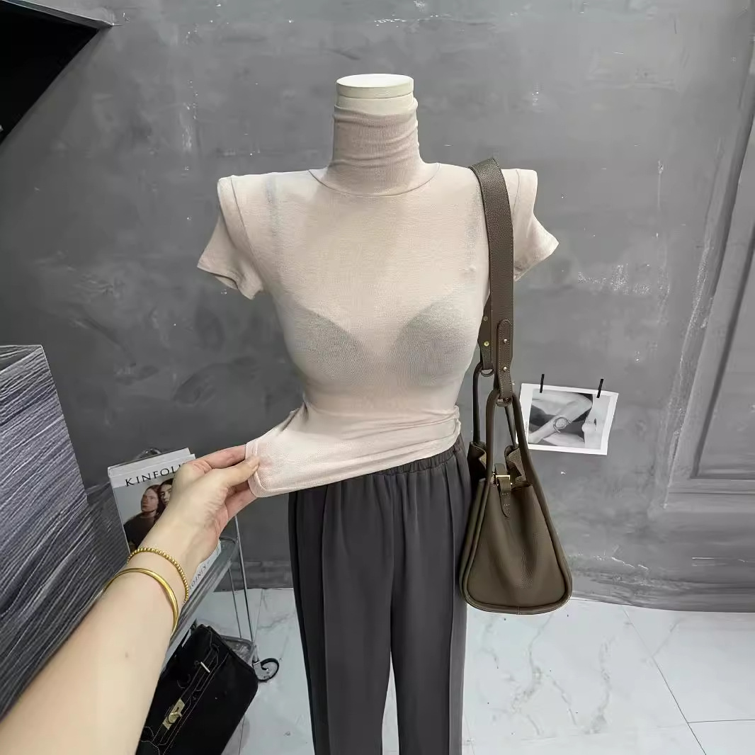 Главная страница > Сексуальный и прозрачный ~ Корейская тонкая рубашка с высоким воротником нижняя рубашка с короткими рукавами