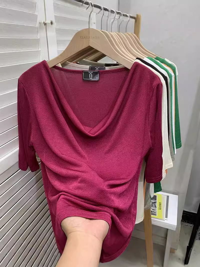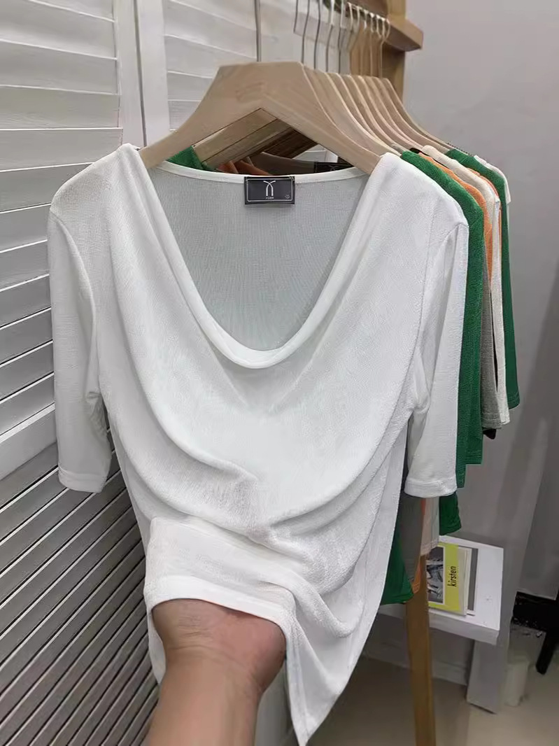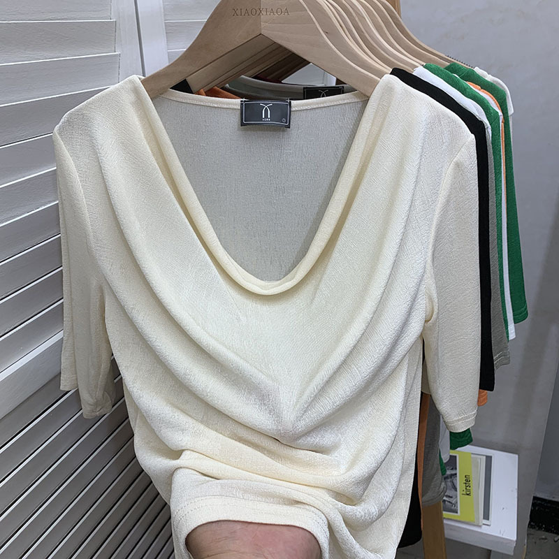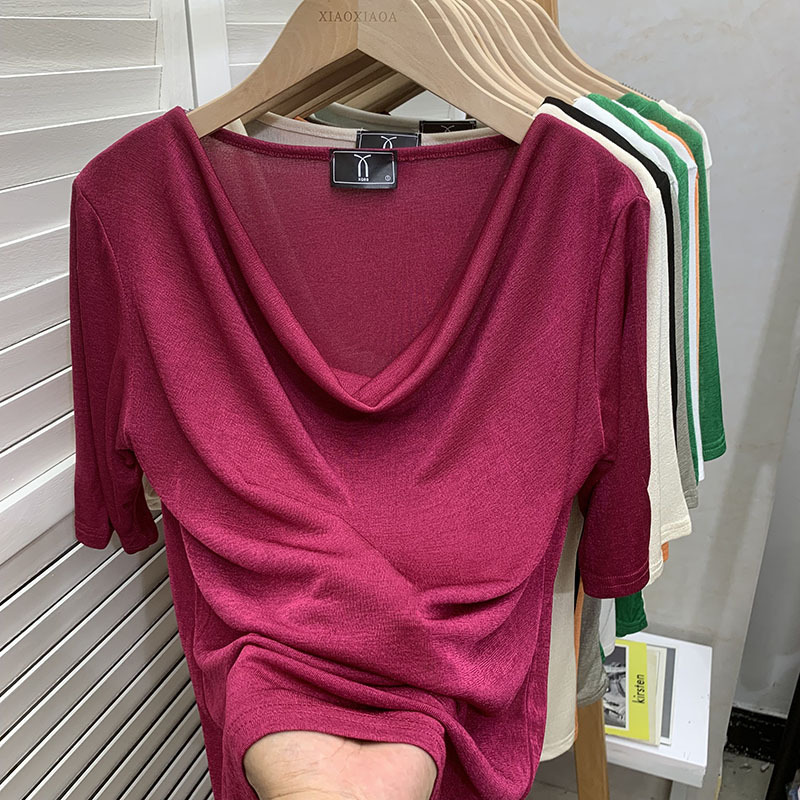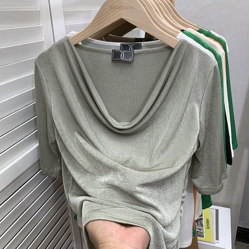 Футболка женская футболка с короткими рукавами женская свободная новая рубашка с короткими рукавами свободная скольжение летняя стека дизайн футболка тонкая и сплошная