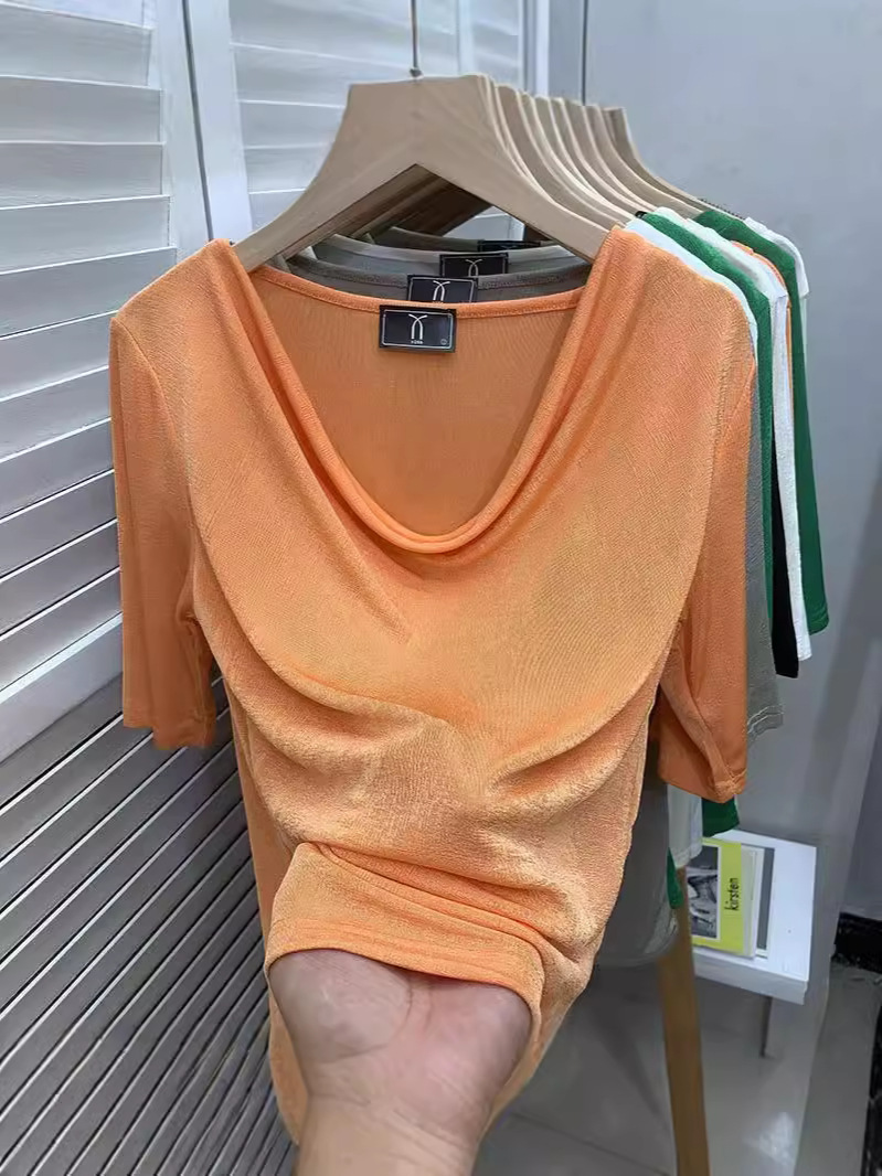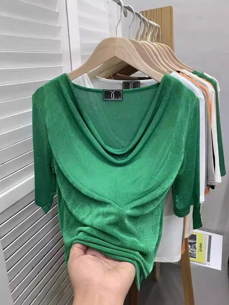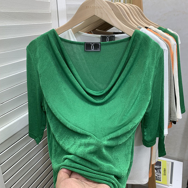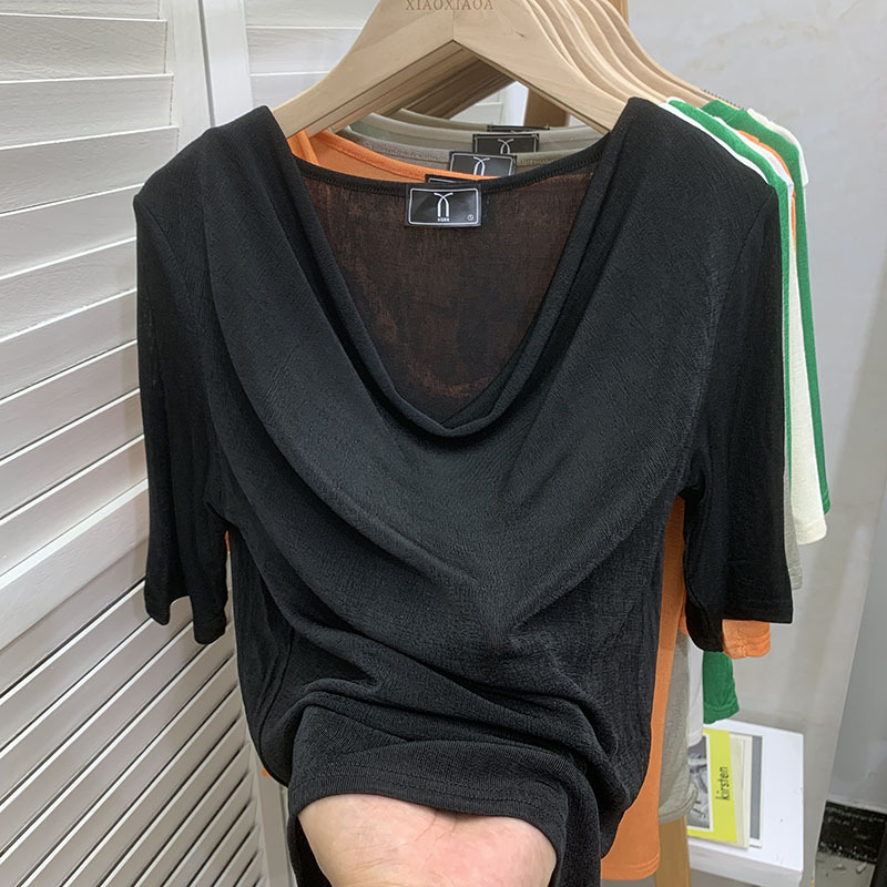 Футболка женская футболка с короткими рукавами женская свободная новая рубашка с короткими рукавами свободная скольжение летняя стека дизайн футболка тонкая и сплошная