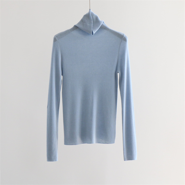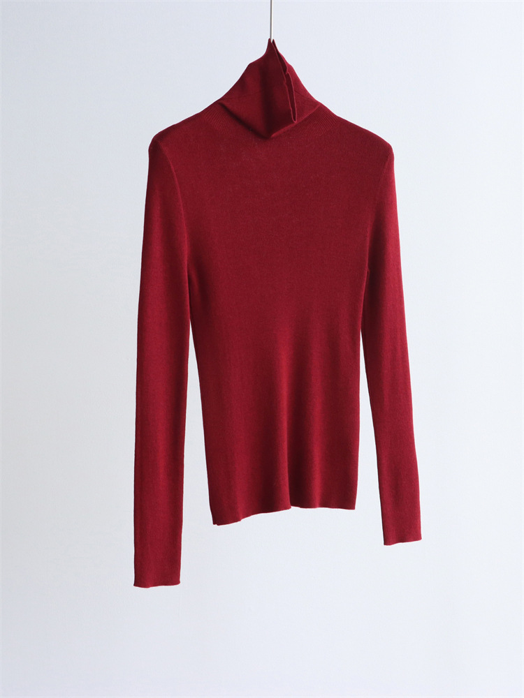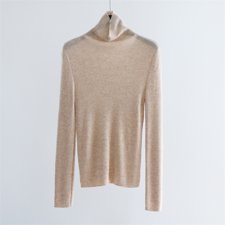 Вечнозеленый трикотаж из смесовой шерсти с ворсовым воротником и взрывоопасным ворсом Узкая Базовая рубашка Осенне-зимний однотонный Универсальный женский пуловер