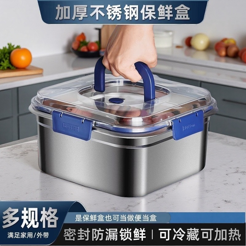 Главная страница > Нержавеющая сталь свежая коробка утолщенная квадратная коробка для завтрака холодильник специальная коробка для хранения открытый пикник коробка для бенто уплотнительная коробка