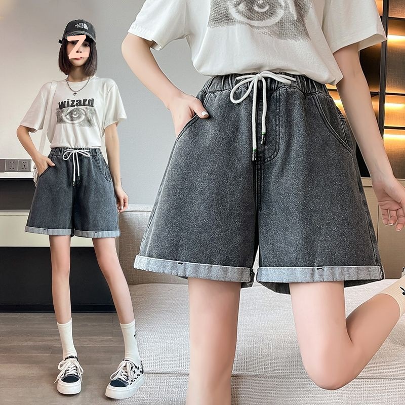 Главная страница > a字高腰牛仔短裤女夏季宽松阔腿显瘦短裤学生加大码女装200斤胖mm