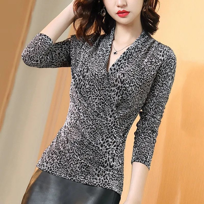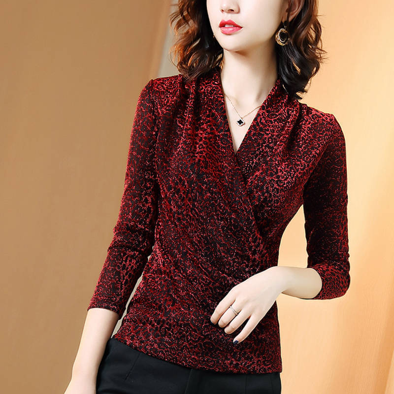 Главная страница > [Плюс/Тонкий] Плюс плюшевый леопардовый V-образный вырез с длинными рукавами топ женский 2024 осенью и зимой