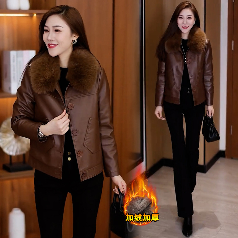 Главная страница > Модная плюшевая толстая кожаная куртка женская 2024 зима новая дикая иностранная куртка с меховым воротником