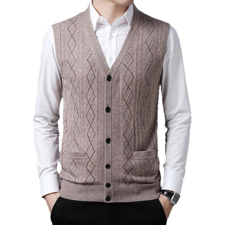 Главная страница > Осенне-зимний мужской трикотажный жилет с v-образным вырезом для молодежи и среднего возраста, кардиган в стиле ретро с ромбом, повседневный трикотажный жилет без рукавов