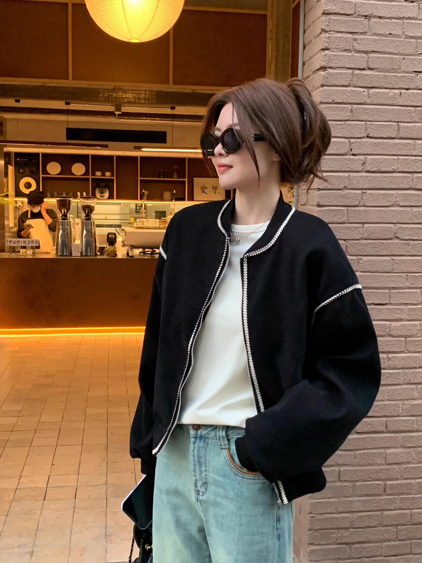 Главная страница > Пшеничные колосья ретро повседневный короткий бейсбольный костюм женский весенний новый свободный черный кардиган куртка