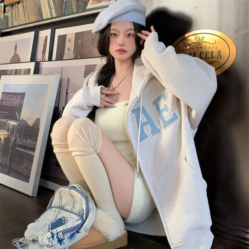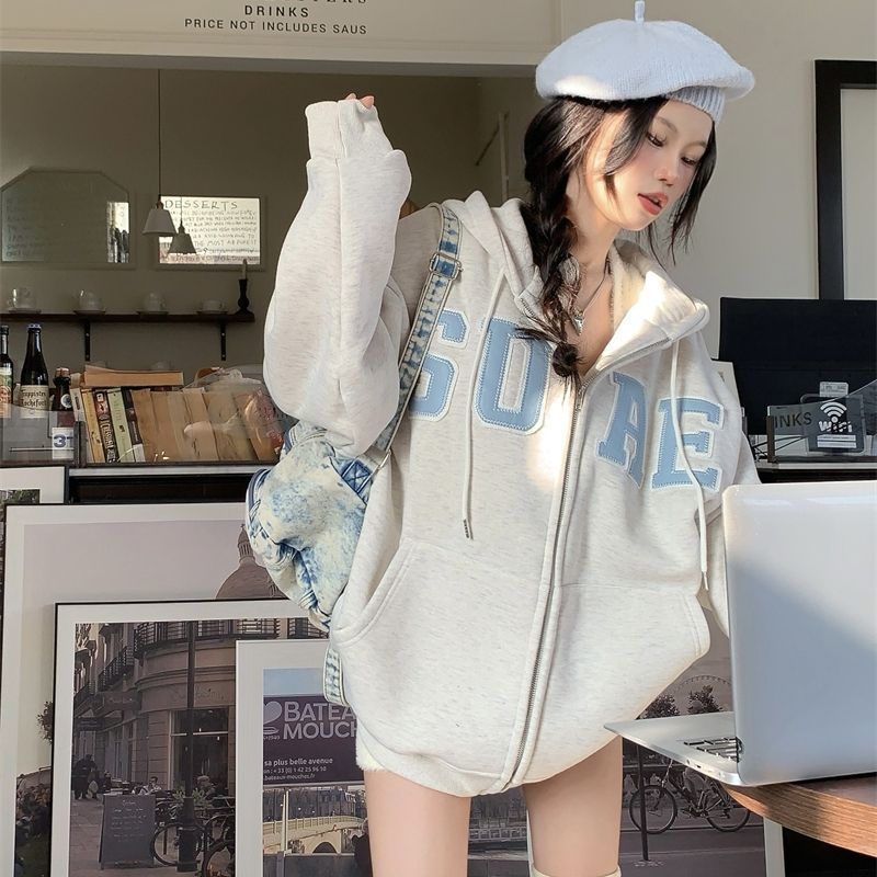 Главная страница > Американский oversize ленивый ветер с капюшоном свитер женский 2023 весенний и осенний прилив свободный повседневный кардиган топ
