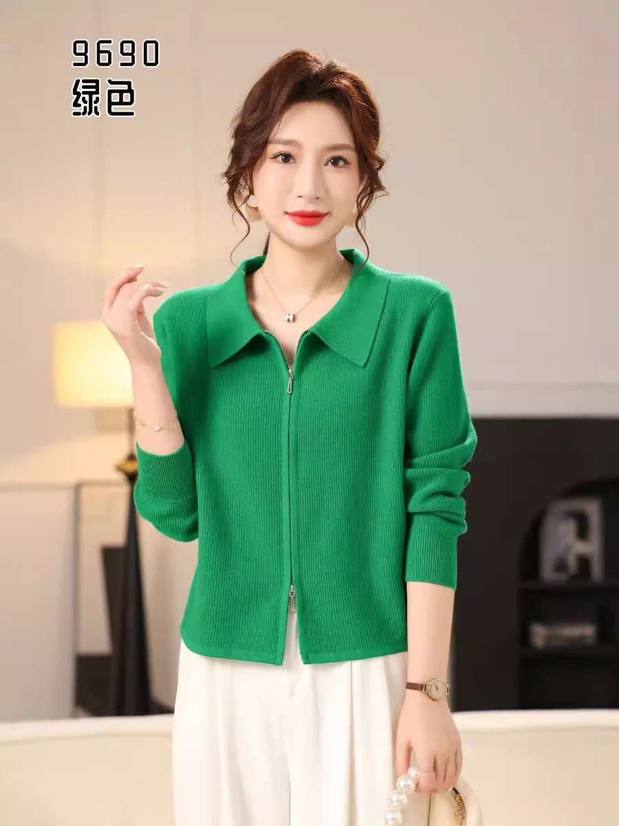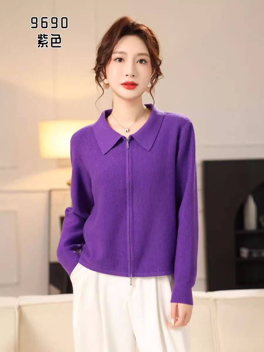 Главная страница > Осенне-зимний шерстяной кардиган для женщин, топ с воротником-поло, свободный крой, на молнии, короткий универсальный кардиган из шерстяного трикотажа