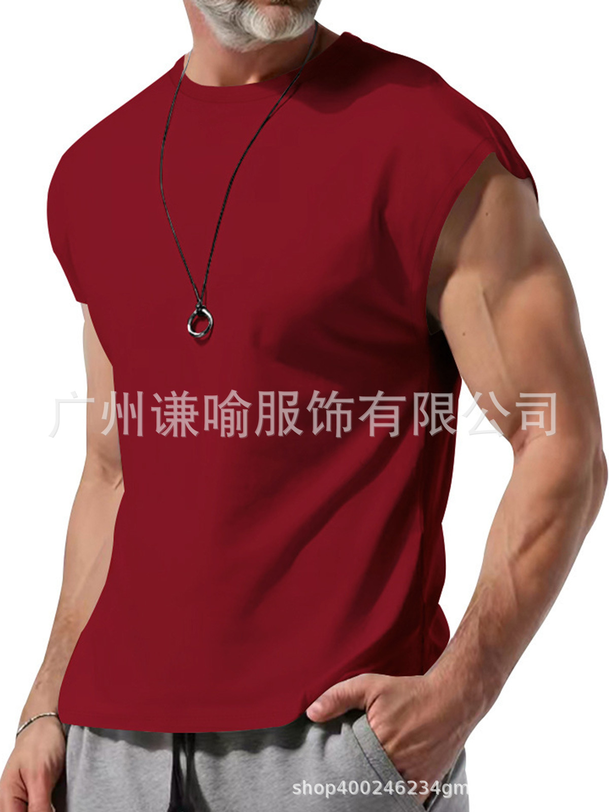 Мужская майка из чистого хлопка, большие размеры, без рукавов, однотонная, с круглым вырезом, спортивная, хит продаж, дышащая и комфортная, 2024 год, европейский и американский стиль.