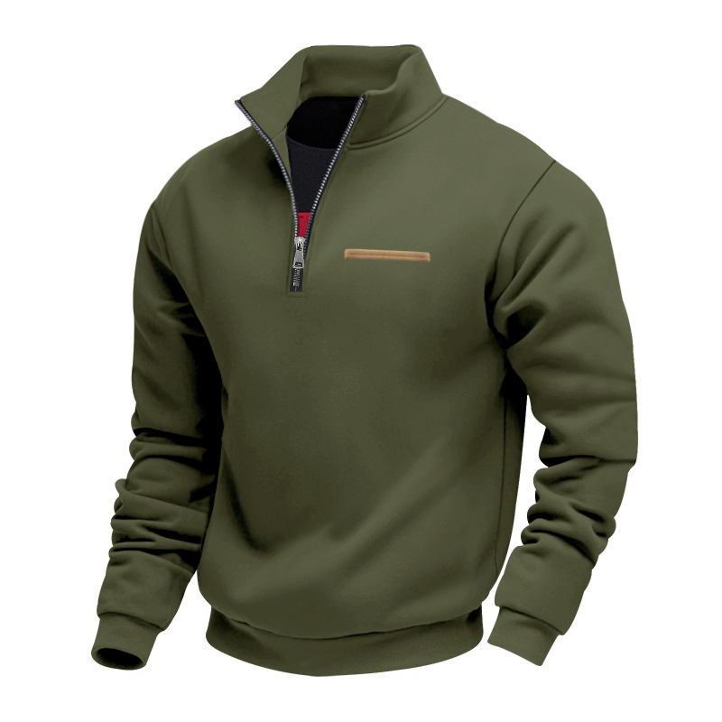 Мужская толстовка в американском стиле для осени и зимы, из плотного флиса, с длинным рукавом, на молнии до середины груди, свободного кроя, с воротником-стойкой.