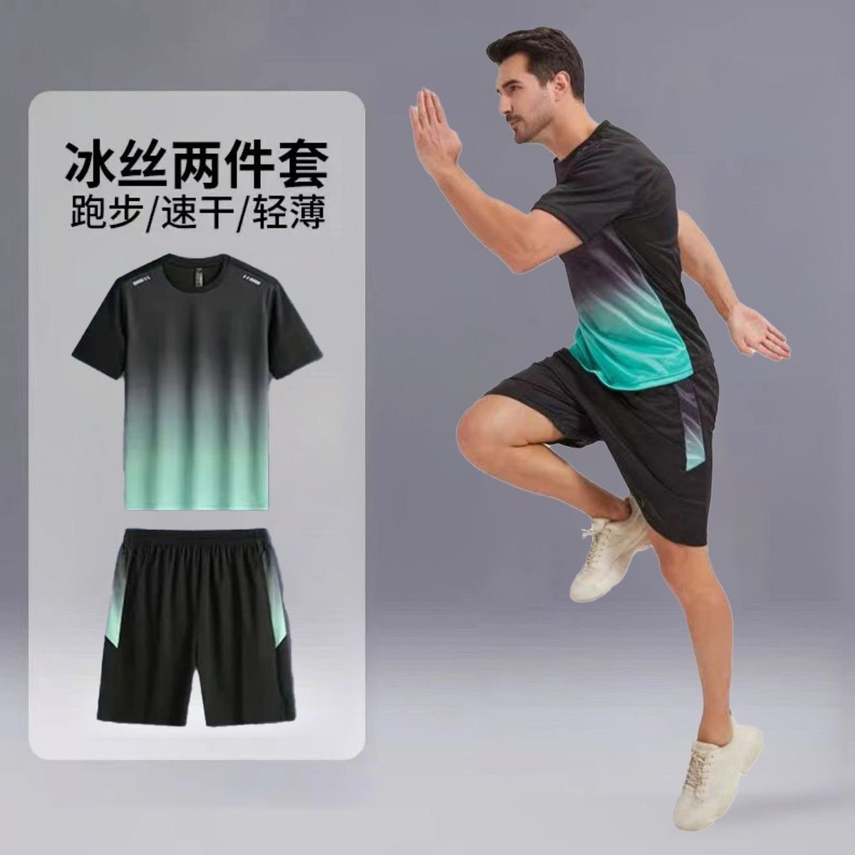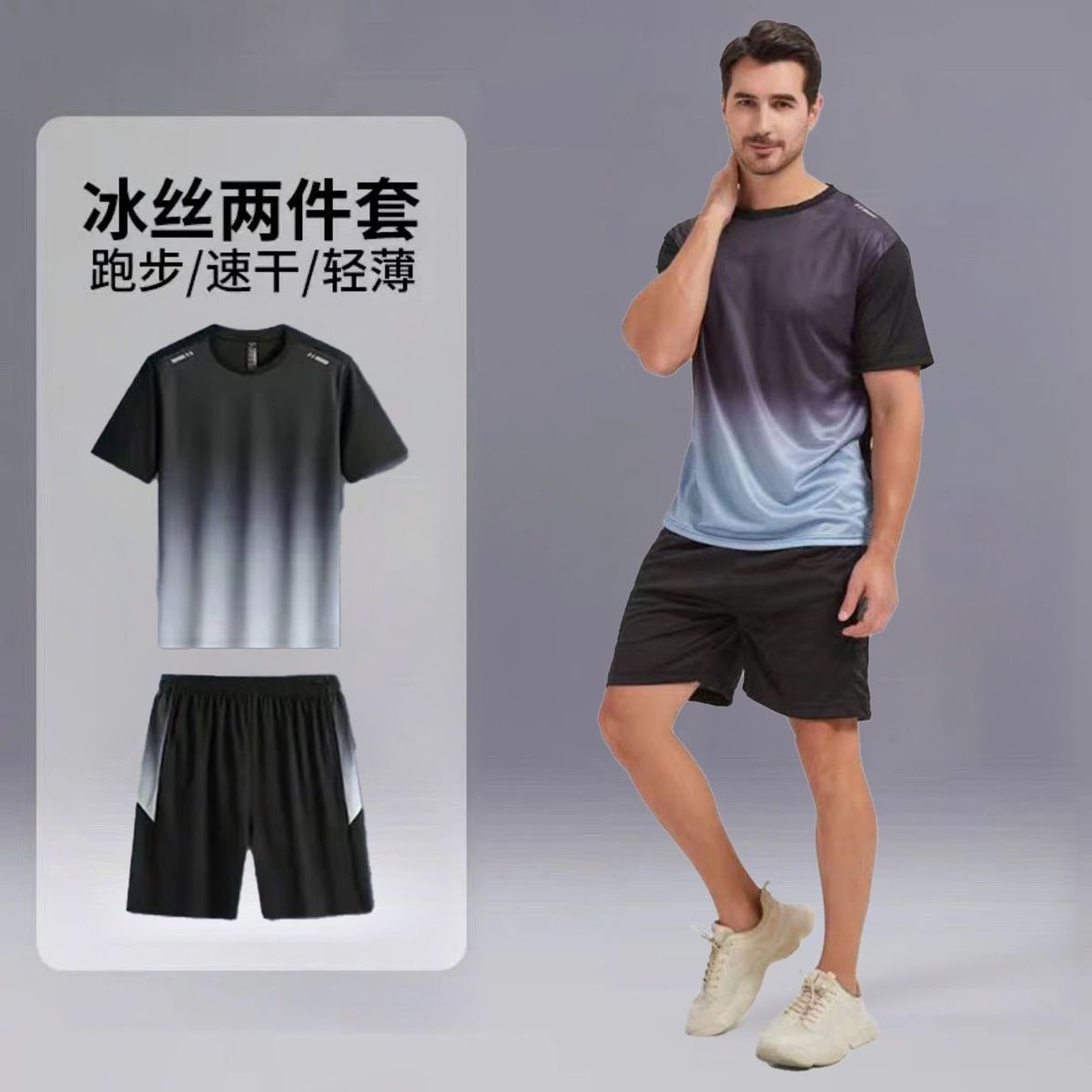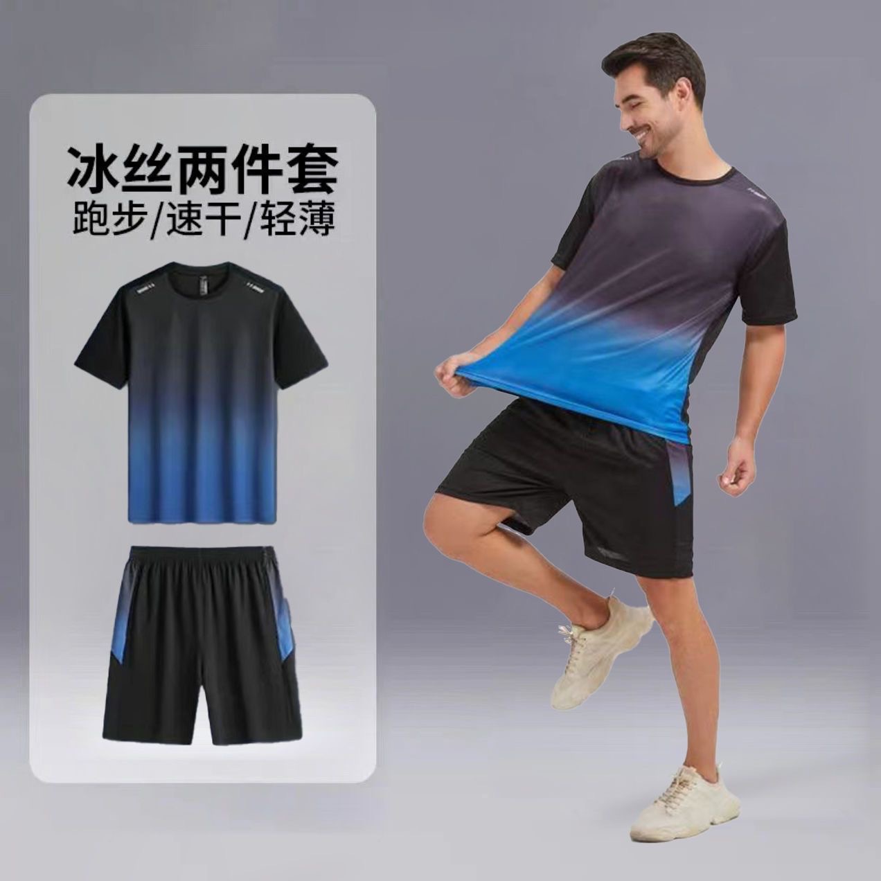 Главная страница > Спортивный набор из ледяного шелка Летние мужские и женские спортивные беговые шорты с короткими рукавами для фитнеса плюс размер на открытом воздухе Утренний бег набор