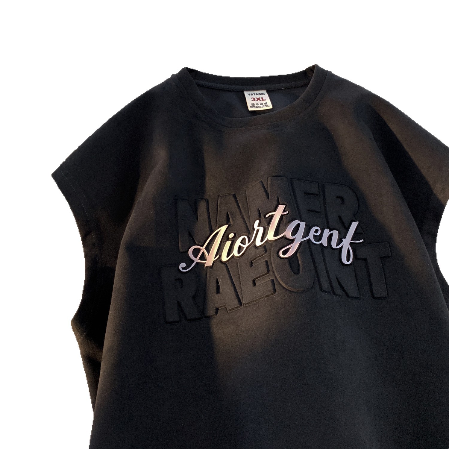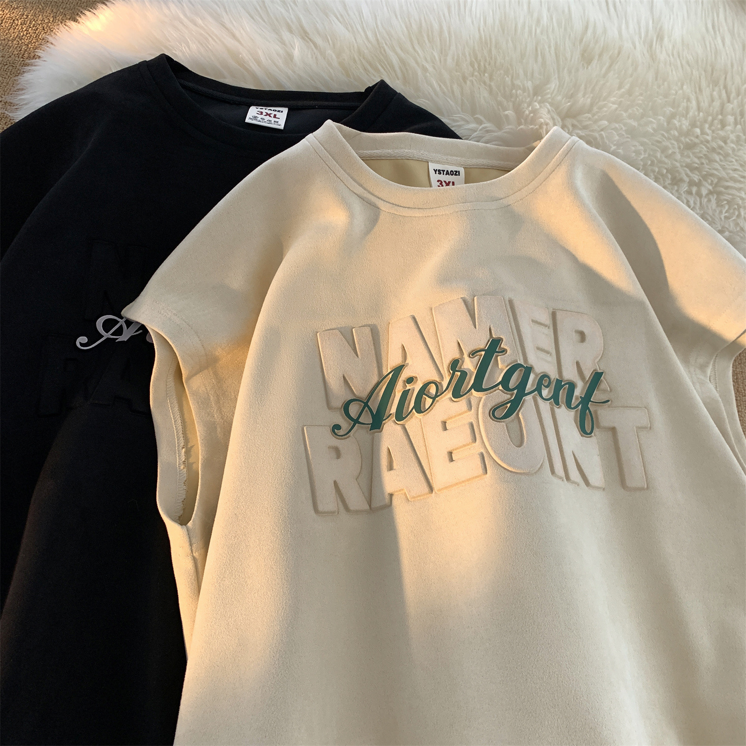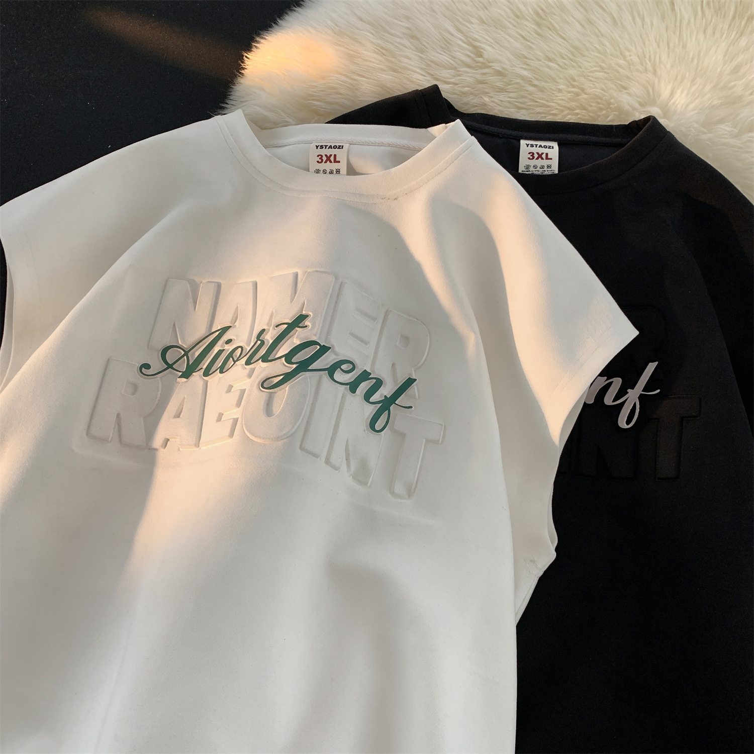 Главная страница > Мужской летний модный замшевый жилет с тиснением, свободный крой, американский уличный стиль, прочная футболка без рукавов.