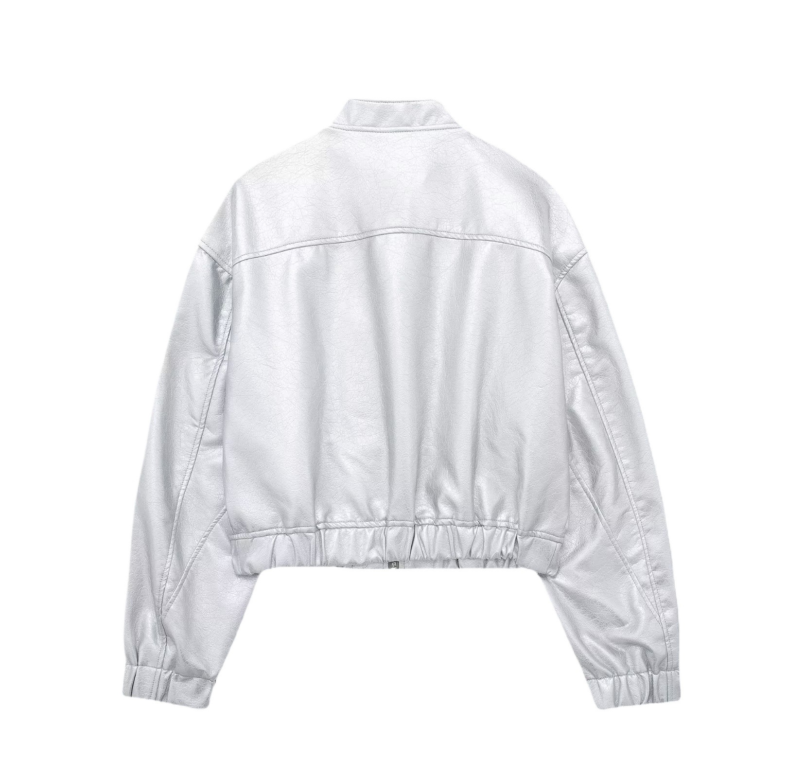2023 Осенняя женская куртка-бомбер из искусственной кожи с металлической текстурой YY13-69717