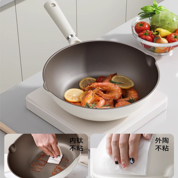 Титановая антипригарная сковорода без фтора, универсальная кухонная сковорода для плиты, глубокая титановая вок для дома