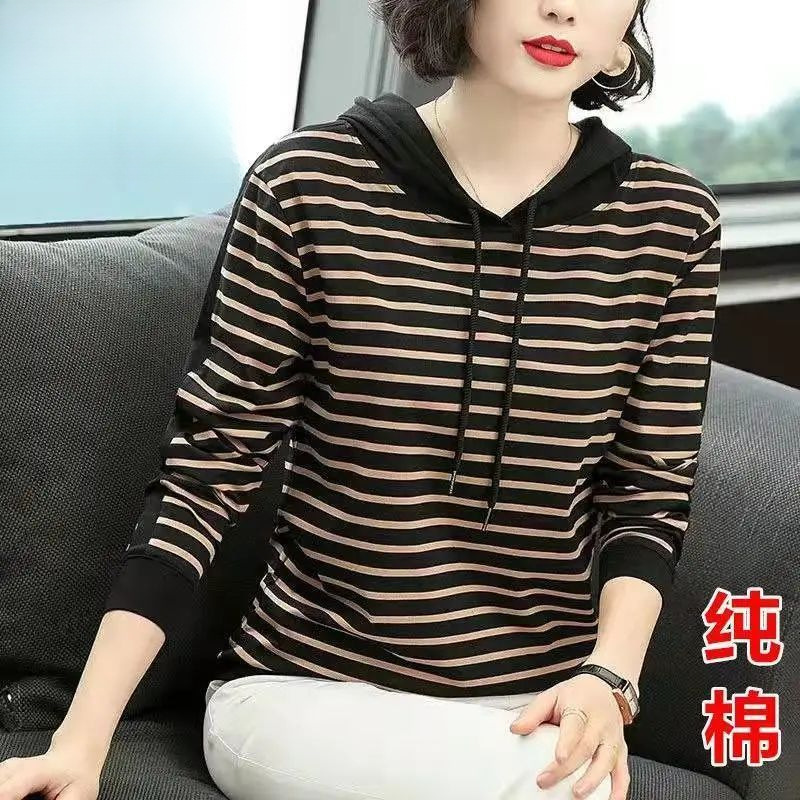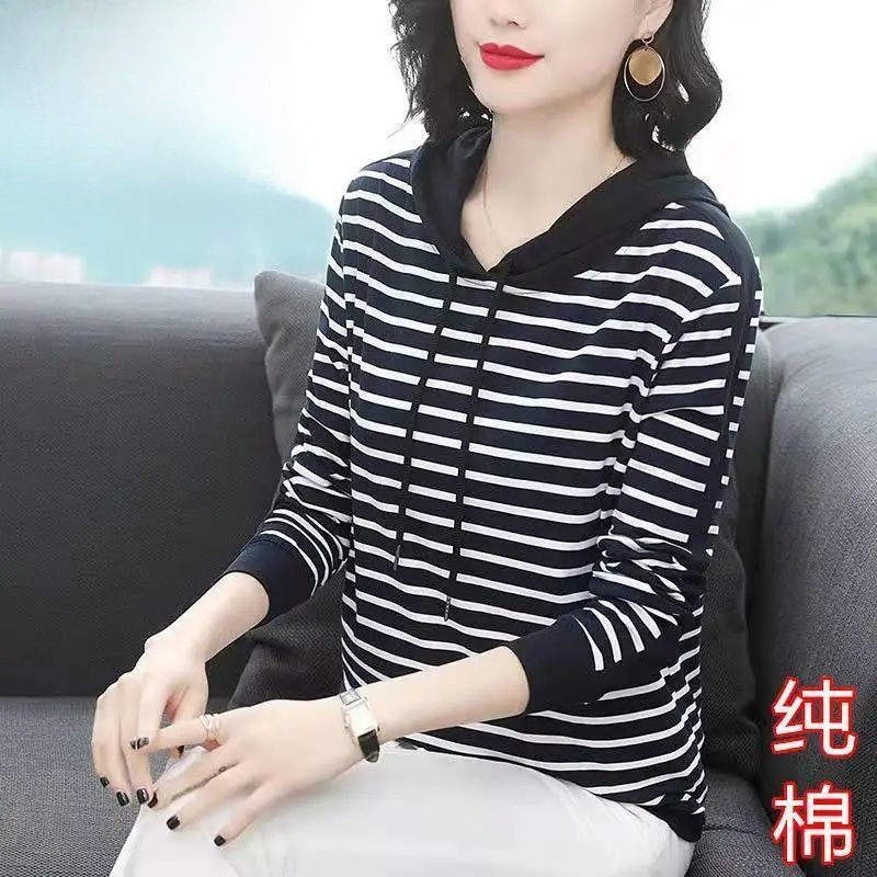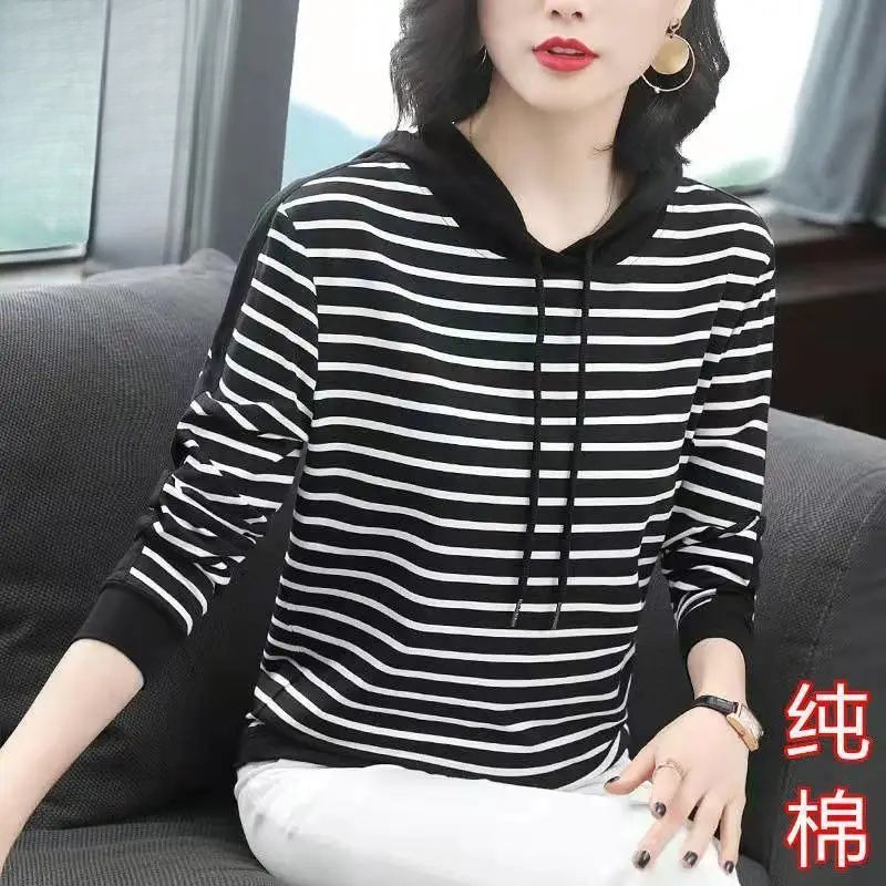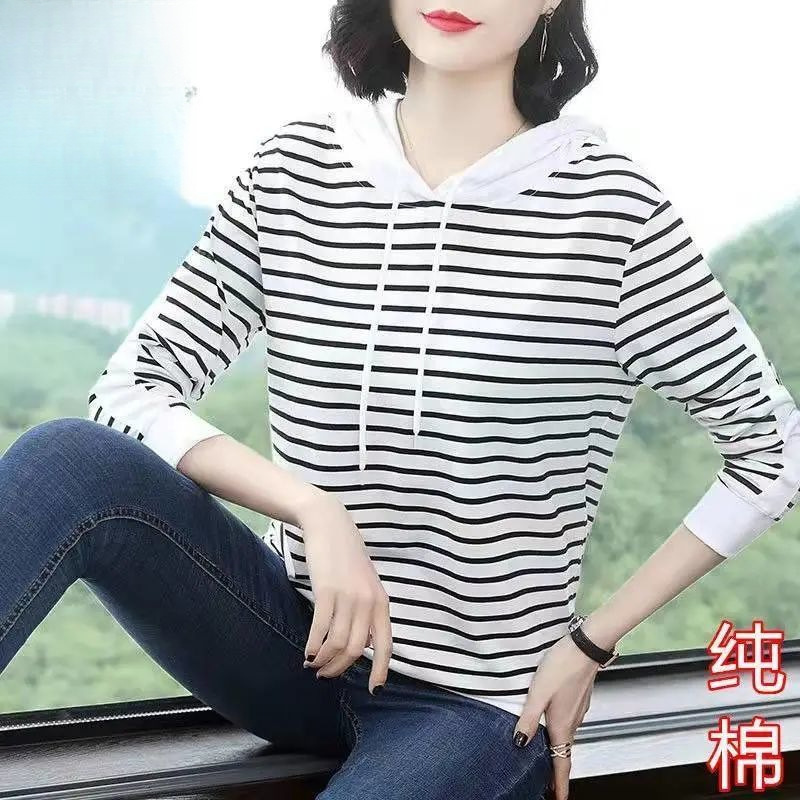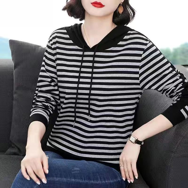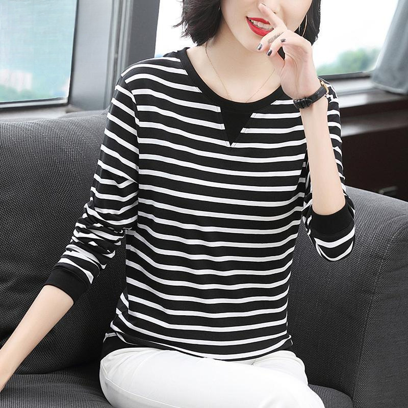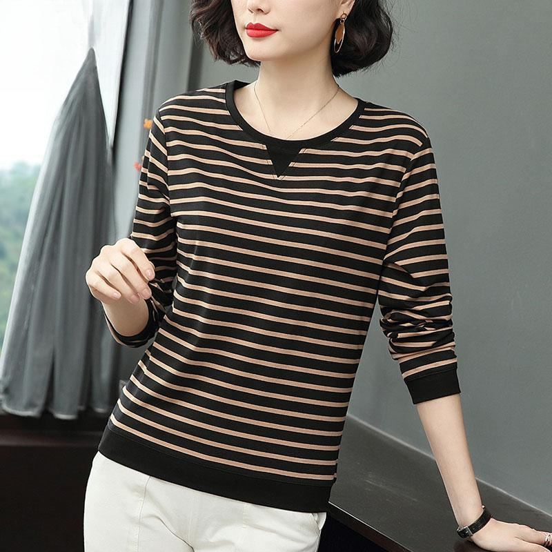 Главная страница > Хлопковая женская футболка с длинным рукавом, новая осенняя свободная толстовка в полоску больших размеров, базовая женская футболка, оптом от производителя.
