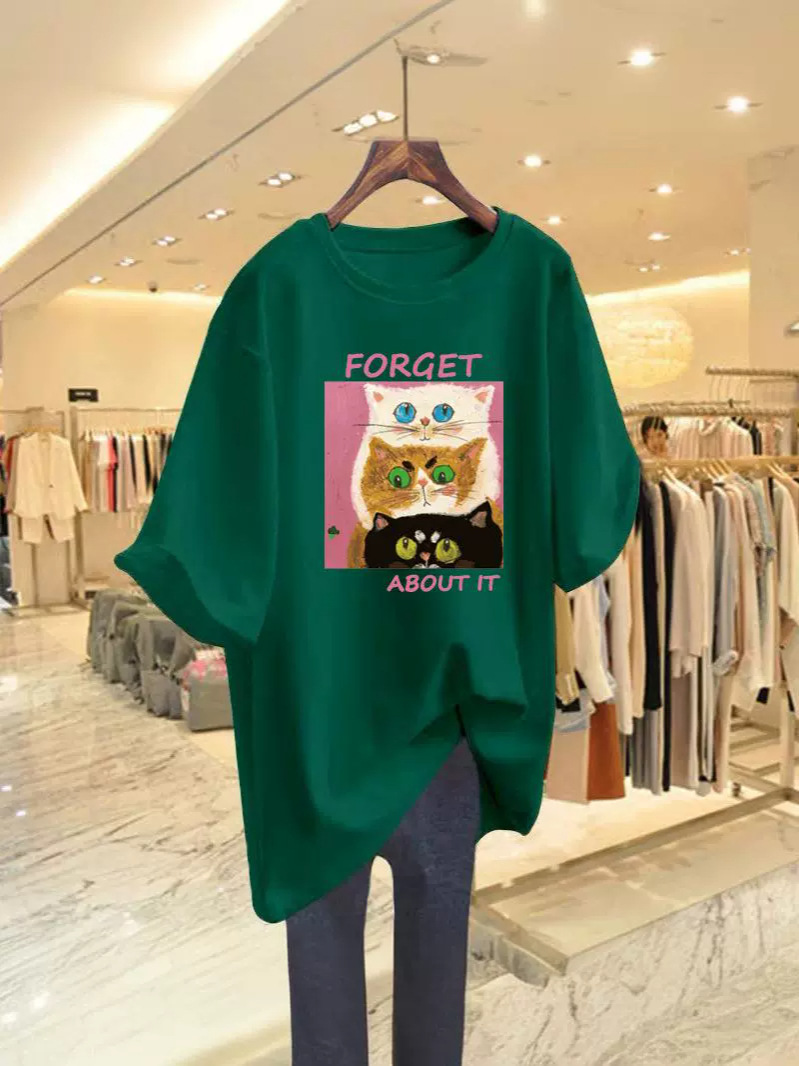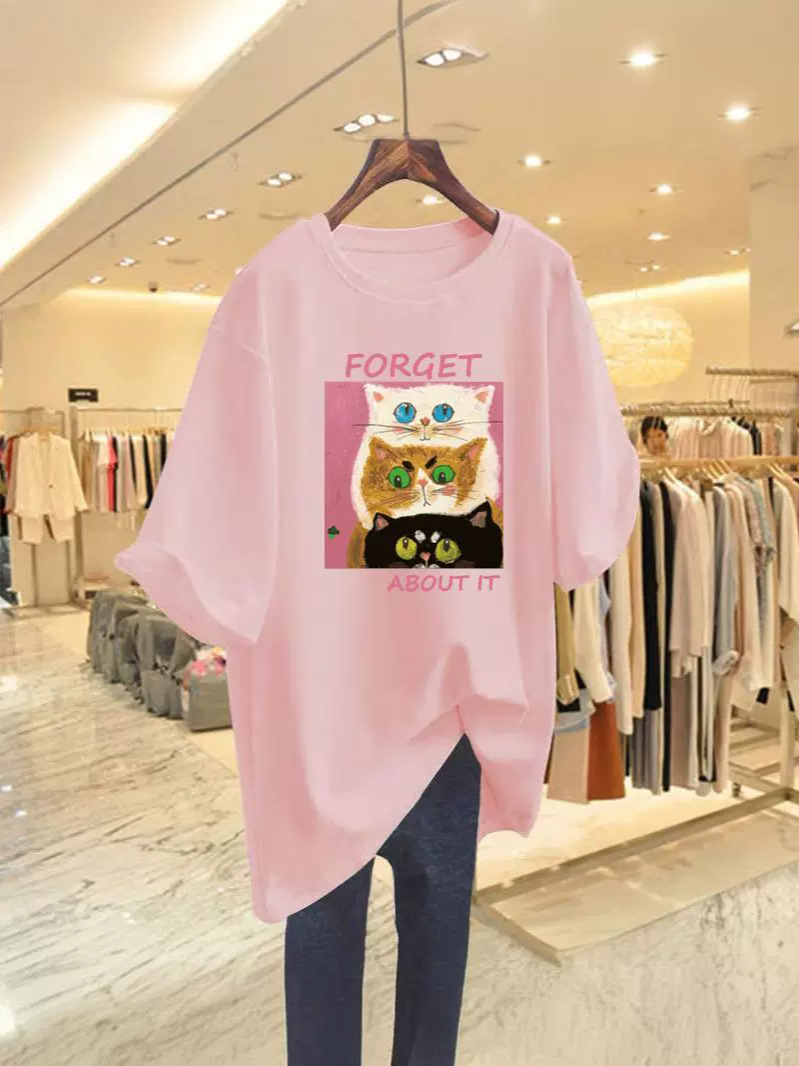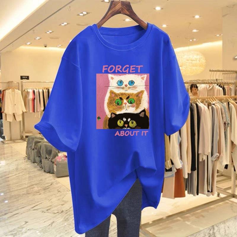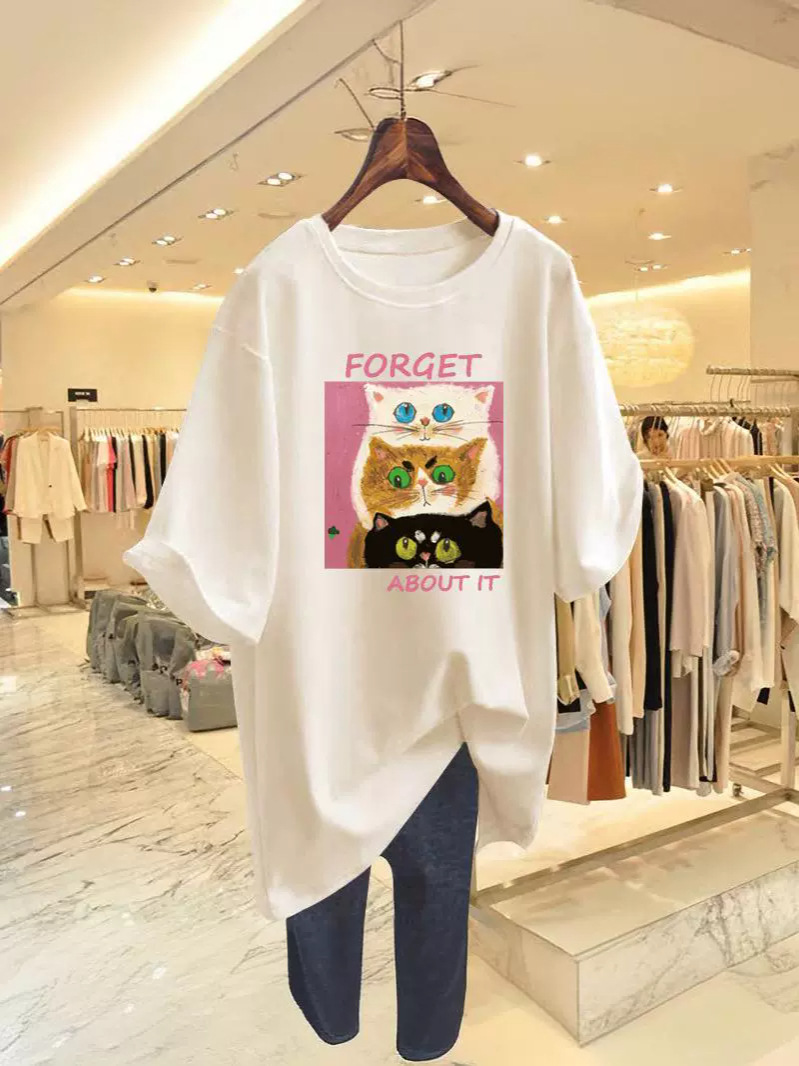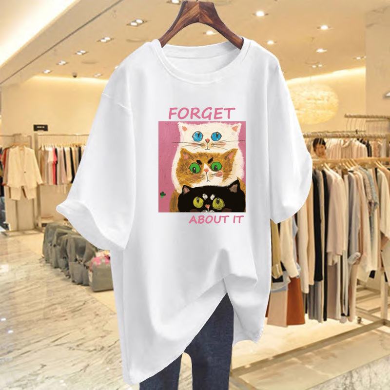 Главная страница > Хлопковая футболка средней и длинной футболка с короткими рукавами весной и летом новая иностранная мода кошачий принт