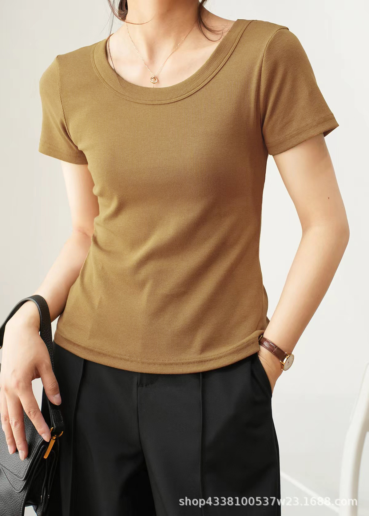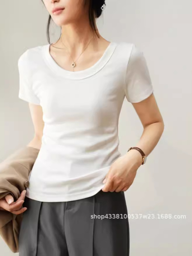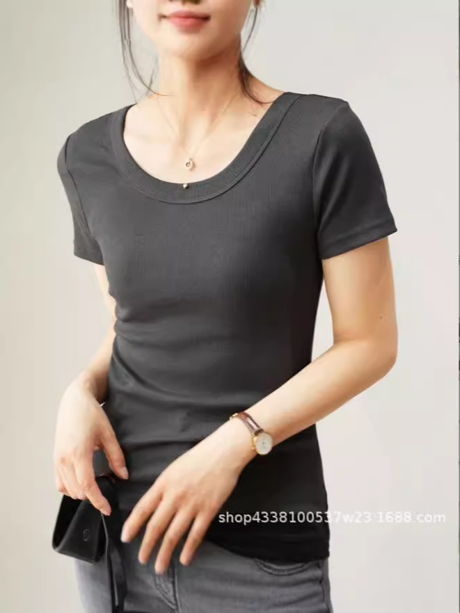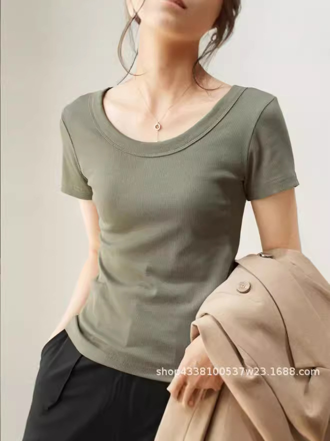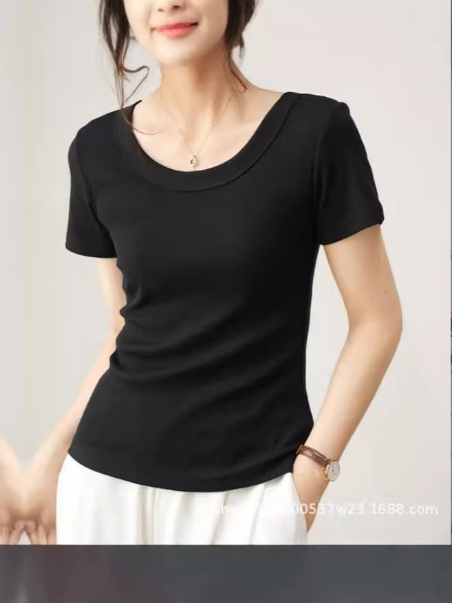 Главная страница > Премиум чувство дикого хлопка с U-образным вырезом футболка женская короткая рубашка с короткими рукавами 2024 летом новая свободная тонкая рубашка