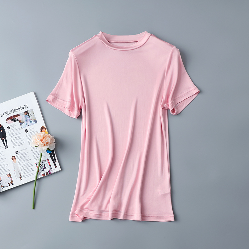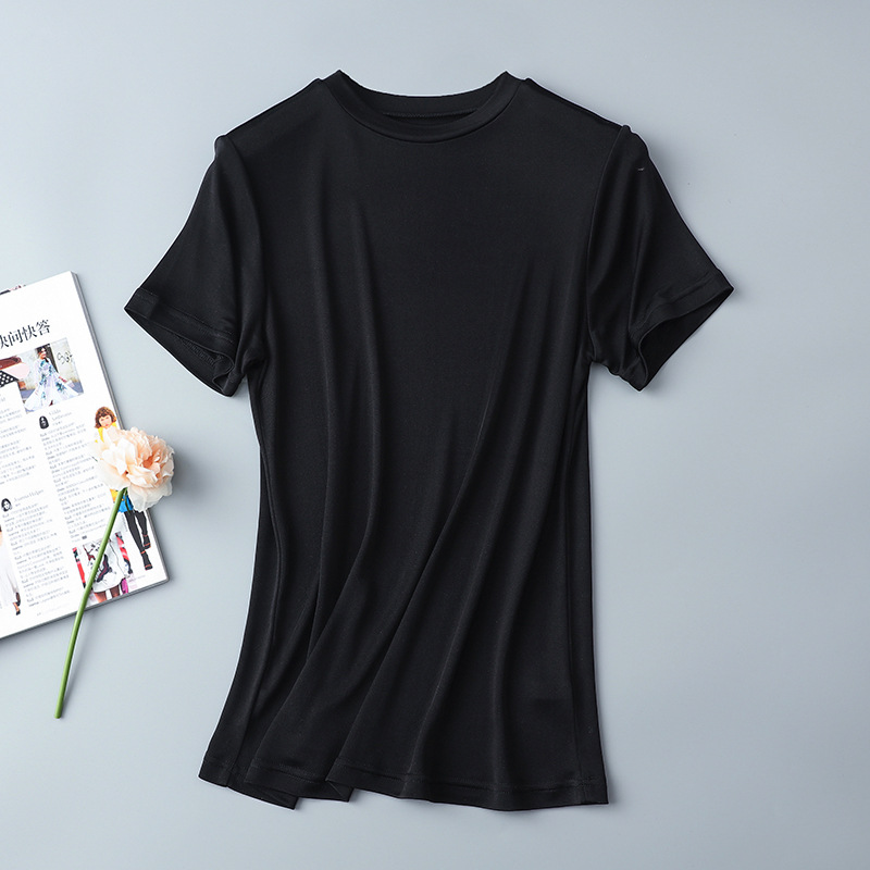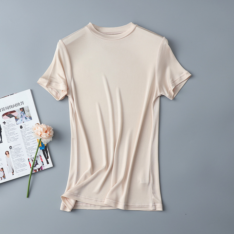 Главная страница > Плотная вязаная шелковая женская футболка с короткими рукавами из шелка тутового дерева, модный двухслойный маленький топ с круглым вырезом, приталенная универсальная нижняя рубашка