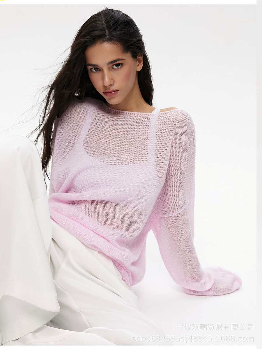 Главная страница > 2024 весна и лето, новый стиль, свитер с вырезами для женщин, европейский и американский стиль, мягкая свободная трикотажная блузка с длинными рукавами, трансграничная горячая распродажа