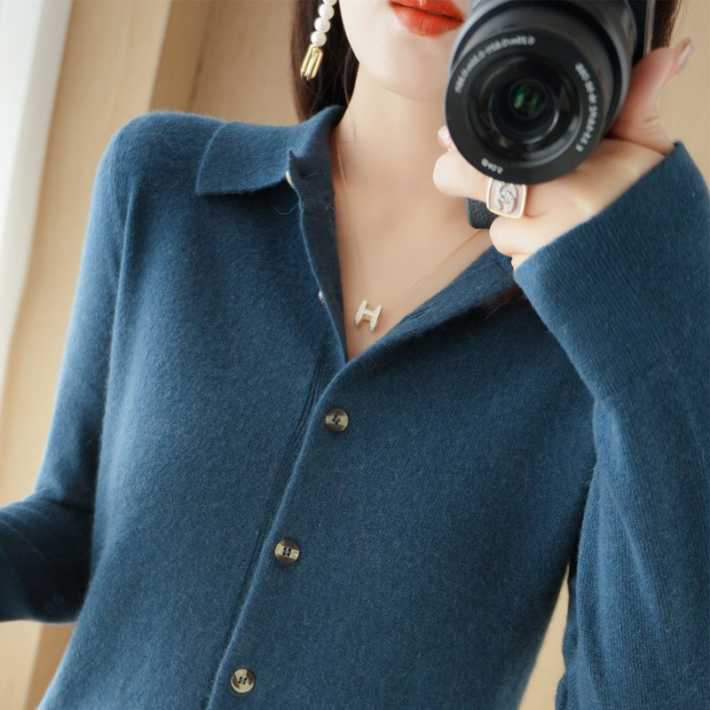 Главная страница > Женская рубашка-поло на осень и зиму, свободный свитер с длинными рукавами, вязаный кардиган без кашемира с отложным воротником, топ-жакет