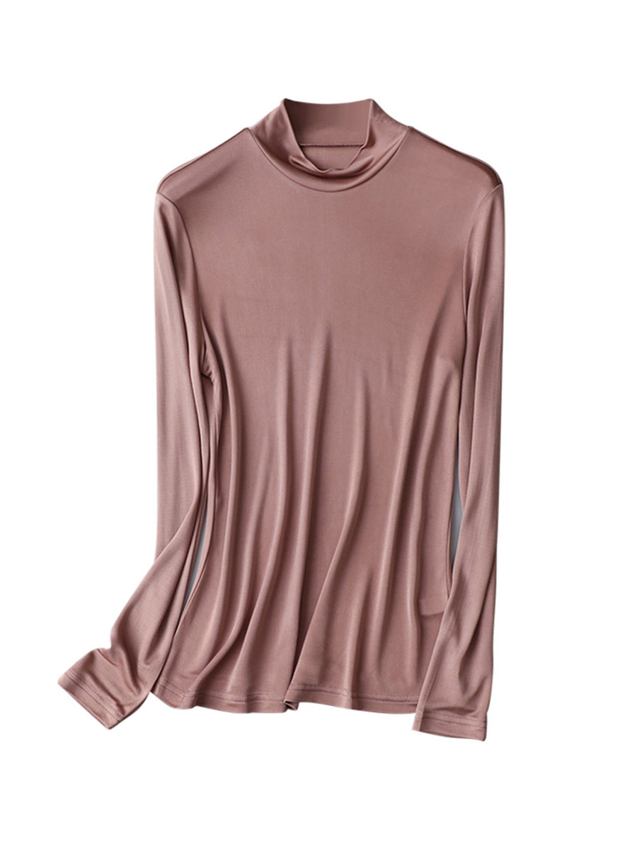 Главная страница > Шелковый однотонный двухсторонний свитер тутового дерева, женская шелковая основа с воротником-стойкой, Приталенный топ с длинными рукавами, футболка для внутреннего ношения