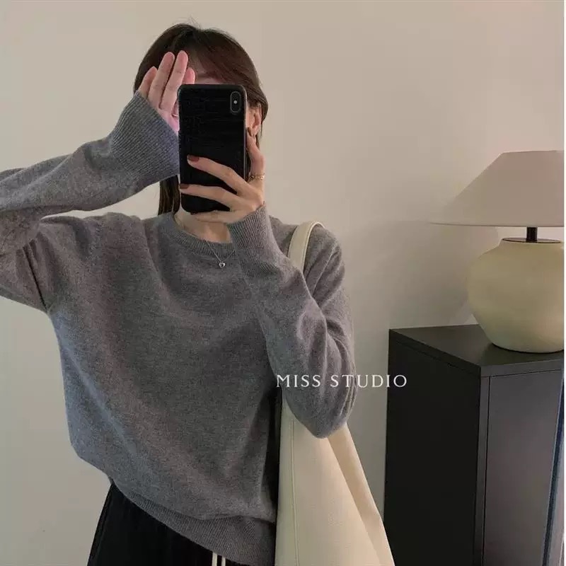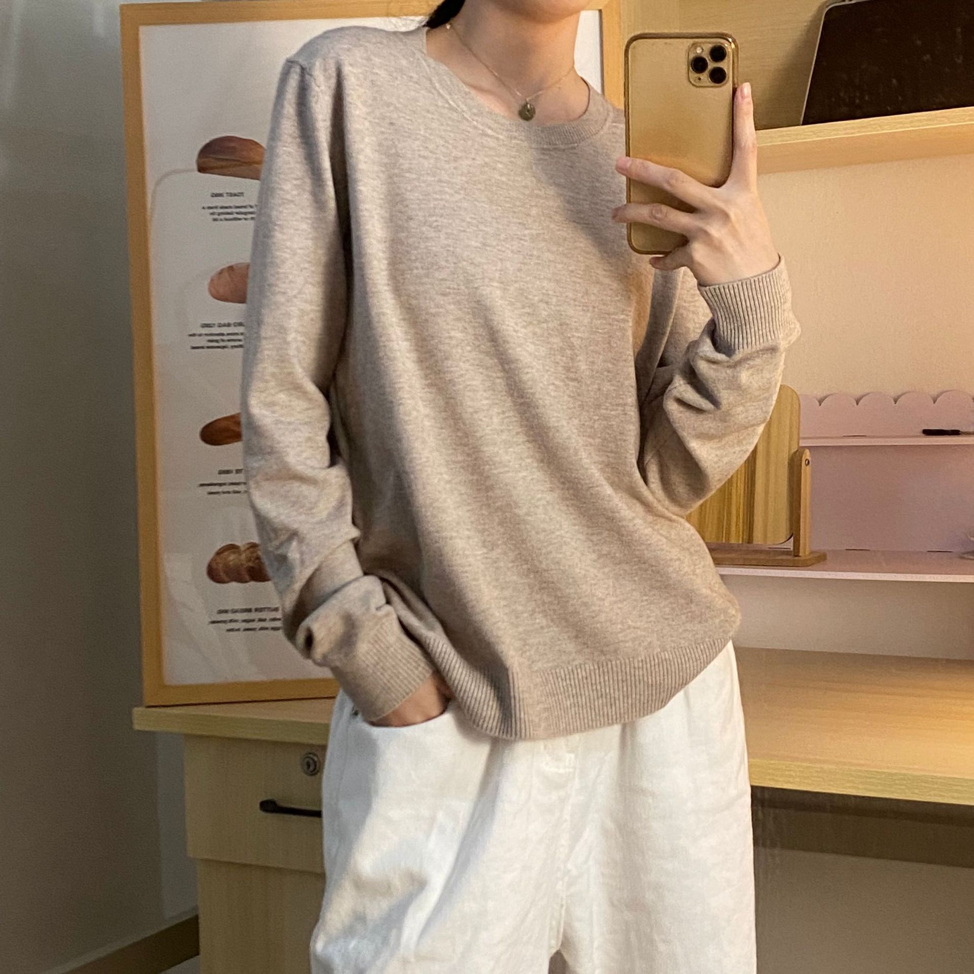 Главная страница > Осенне-зимняя элегантная приталенная внутренняя Базовая рубашка в Корейском стиле, свободный Универсальный однотонный вязаный свитер с круглым вырезом, женский топ с длинными рукавами