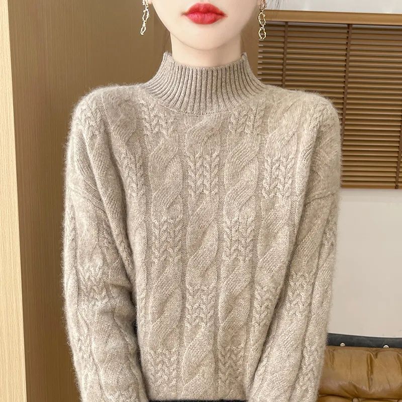 Главная страница > Женский элегантный свитер-пуловер крупной вязки с эффектом 3D, с воротником-стойкой, больших размеров, осень-зима 2024