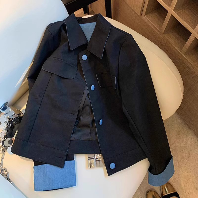 Главная страница > Женский жакет с контрастной строчкой синего и черного цвета, лацканы, осенне-зимний дизайн, ретро, повседневный, замша.