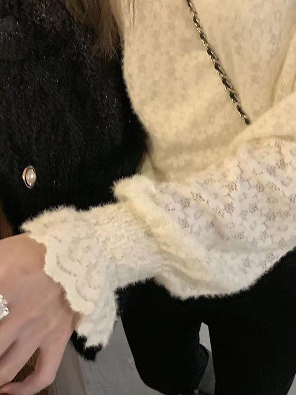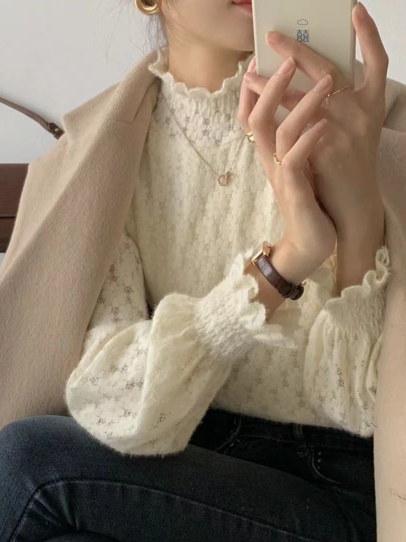Главная страница > Универсальная блузка с флисовой подкладкой и кружевом для женщин, стильный пуловер с пышными рукавами для осени и зимы, свободная рубашка с длинными рукавами для весны.
