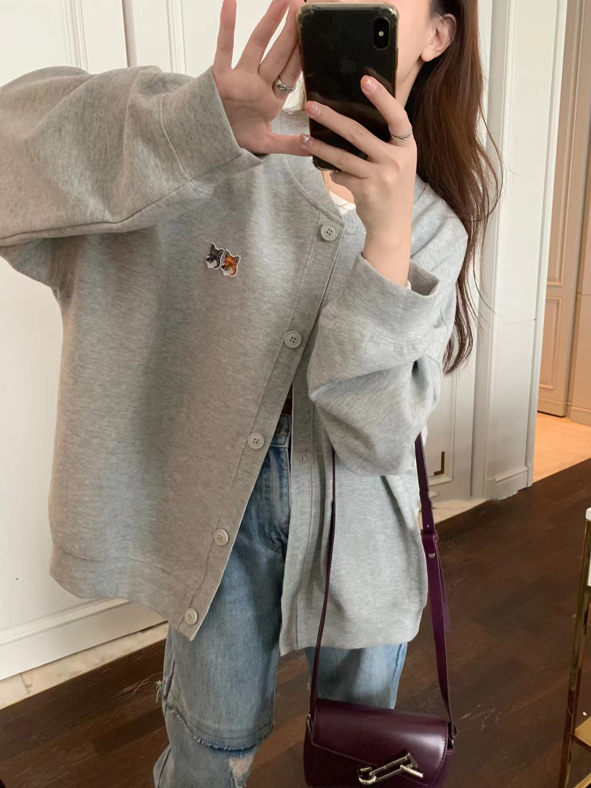 Главная страница > Куртка-кардиган ADER для женщин, осень 2023, новая, свободная, повседневная, с вышивкой лисы, универсальная