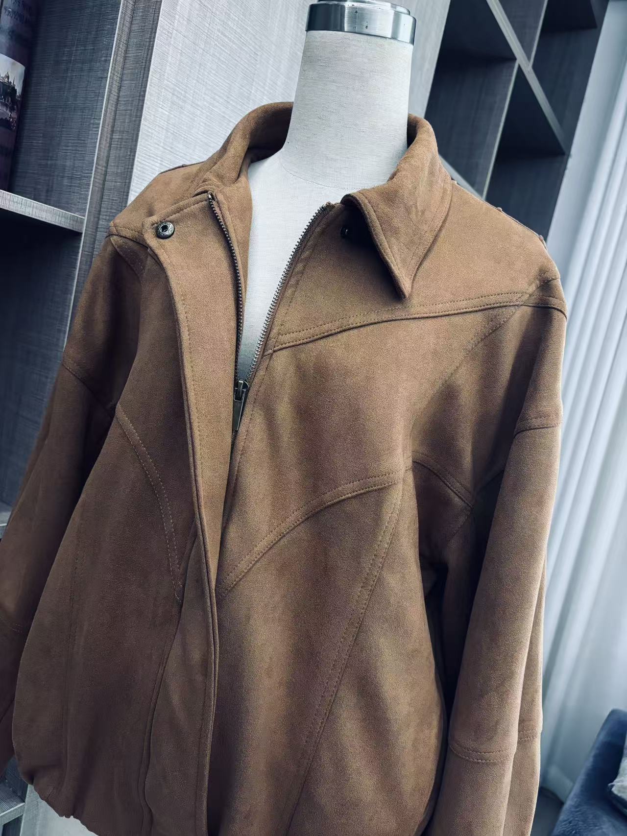 Главная страница > В наличии: Куртка женская свободного кроя с отложным воротником, замшевая, цвет мелард-коричневый, модель 2025 года, в стиле Дженнисы Ким Джини.