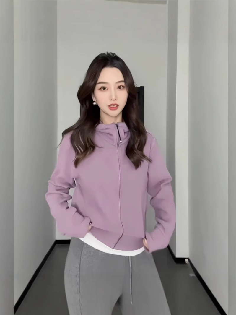 Главная страница > Фиолетовый свитер большого размера с капюшоном женский 2024 новый взрывной осенний воротник кардиган куртка женский свободный повседневный топ