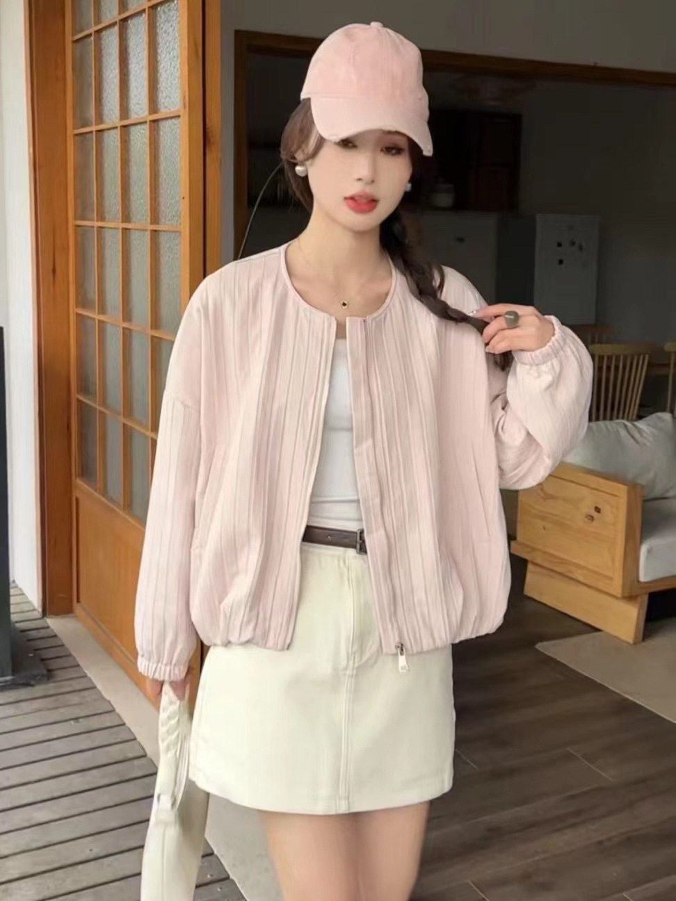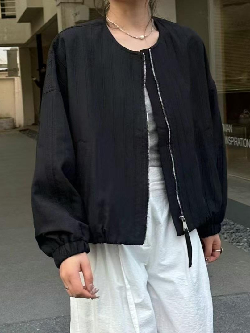 Главная страница > Корейская укороченная куртка-бомбер на молнии для женщин, осень 2025, новая свободная облегающая повседневная куртка в рубчик