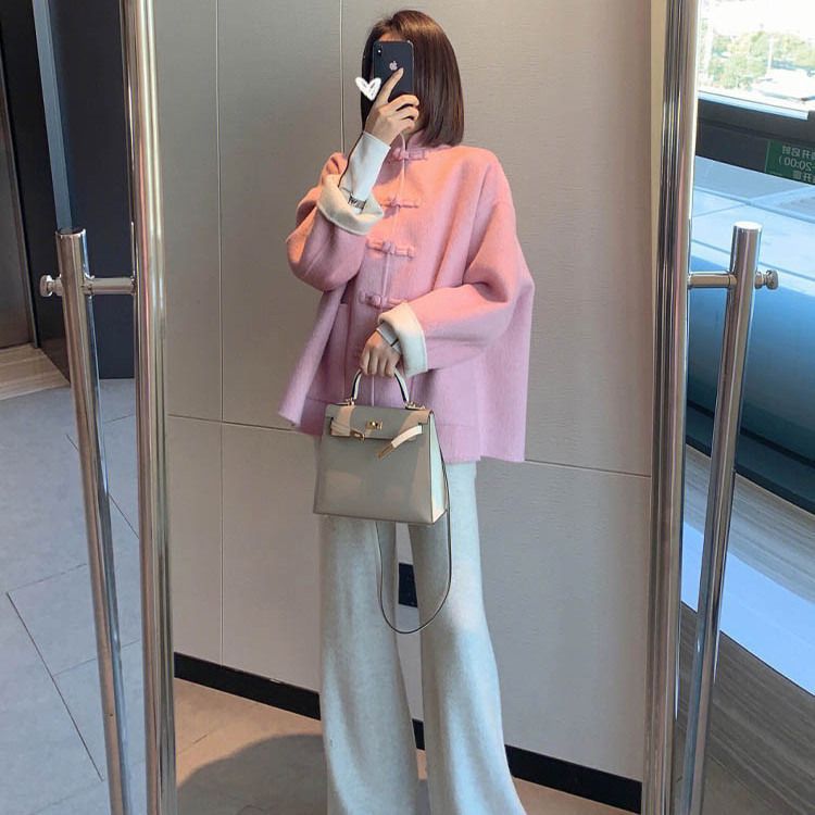 Главная страница > Новое желтое шерстяное пальто в китайском стиле, Женская осенне-зимняя повседневная мода, свободный маленький Универсальный Зимний топ с длинными рукавами