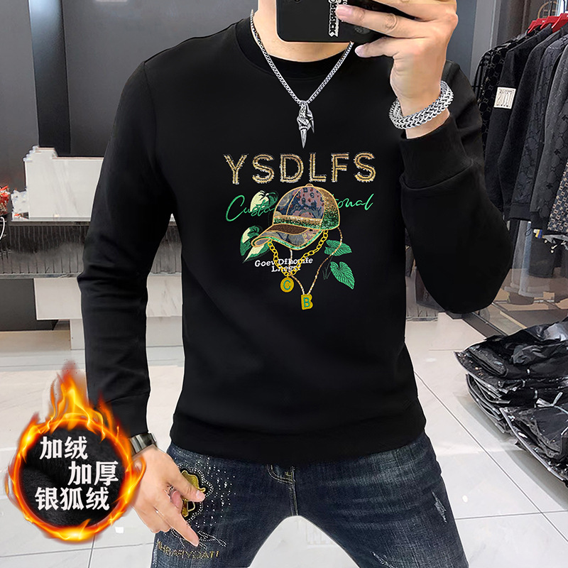 Главная страница > Модный европейский прилив мужской свитера с круглым вырезом тяжелый шапка с вышивкой блестками мужской топ осень-зима новый бархат утолщение