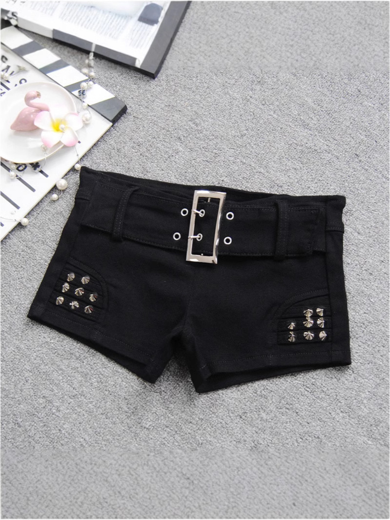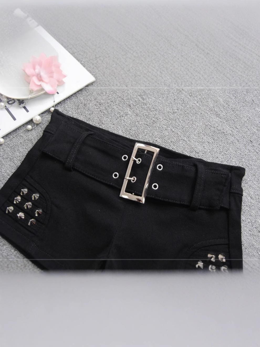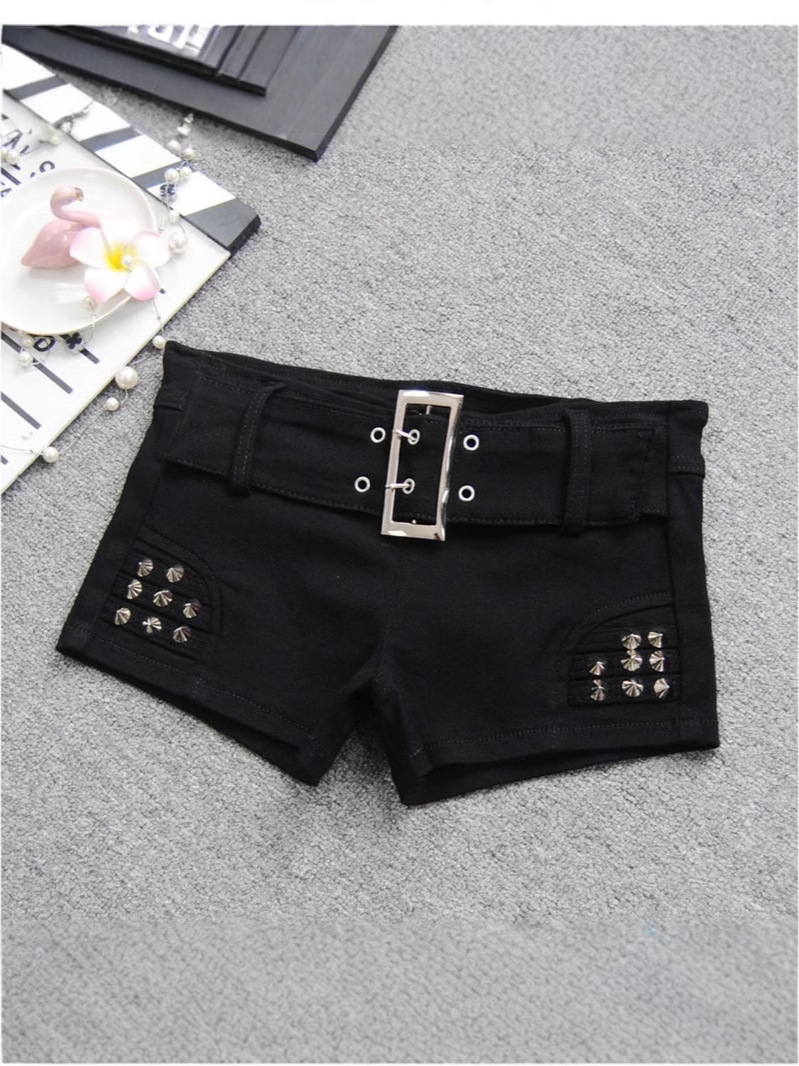 Главная страница > Черные обтягывающие эластичные джинсовые шорты с низкой талией женские стройные дикие заклепки ночной клуб короткие брюки сексуальные шорты