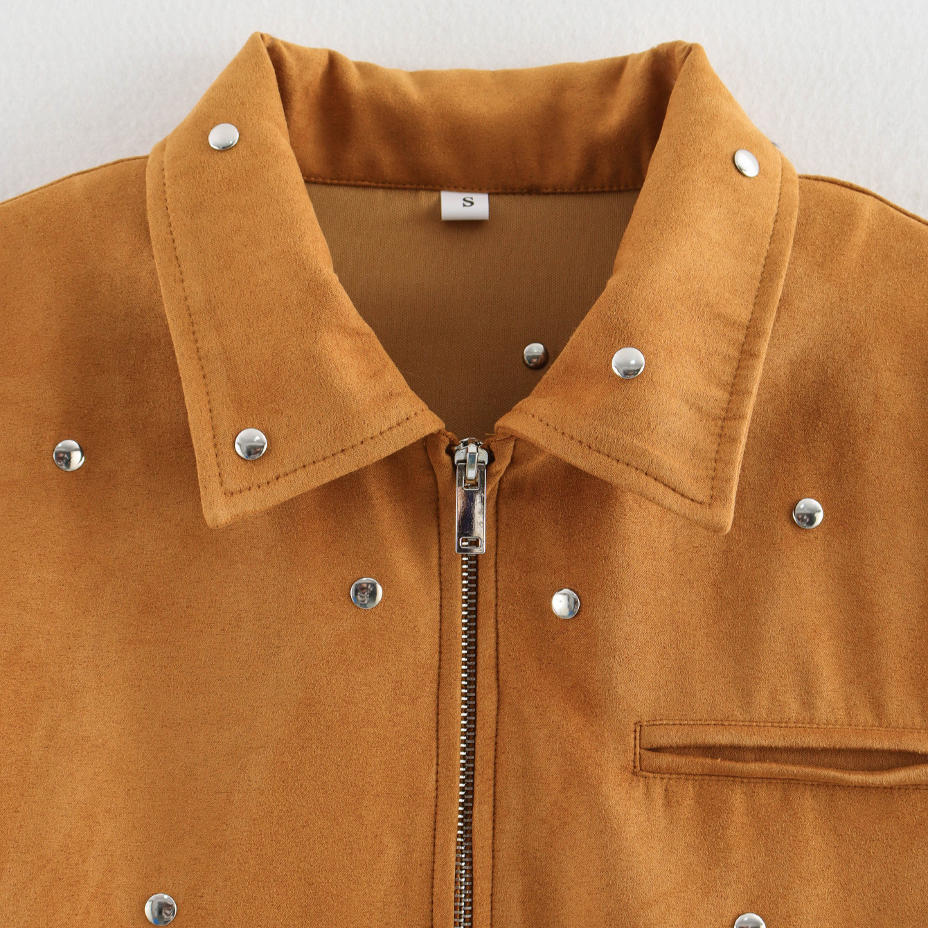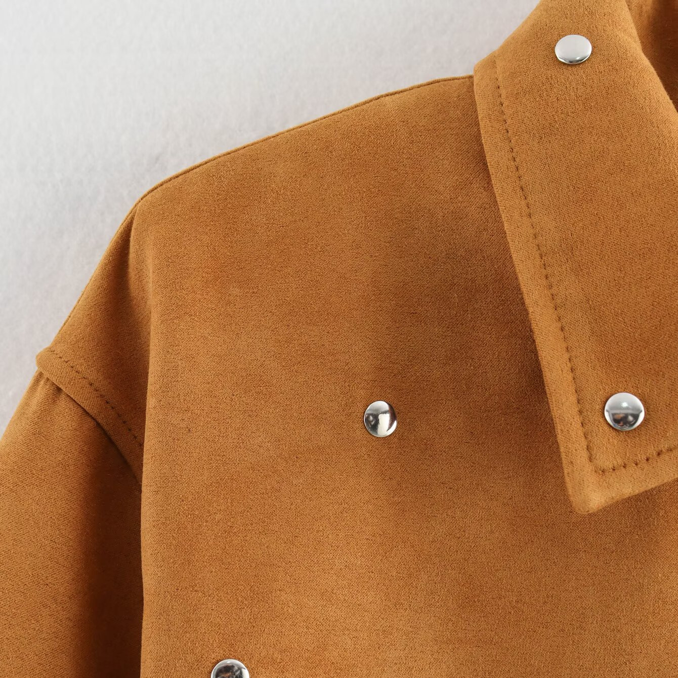 Главная страница > Трансграничная внешняя торговля новый женский ретро шипованные замшевые куртки куртка уличный ветер с отворотом длинный рукав свободный топ