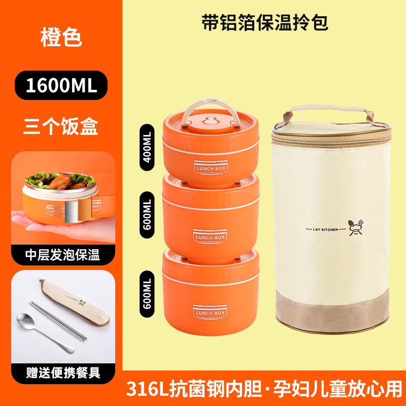 Изоляционная модель - 3 слоя 1,6 л (с мешком посуда), оранжевый.★Сталь 316.
